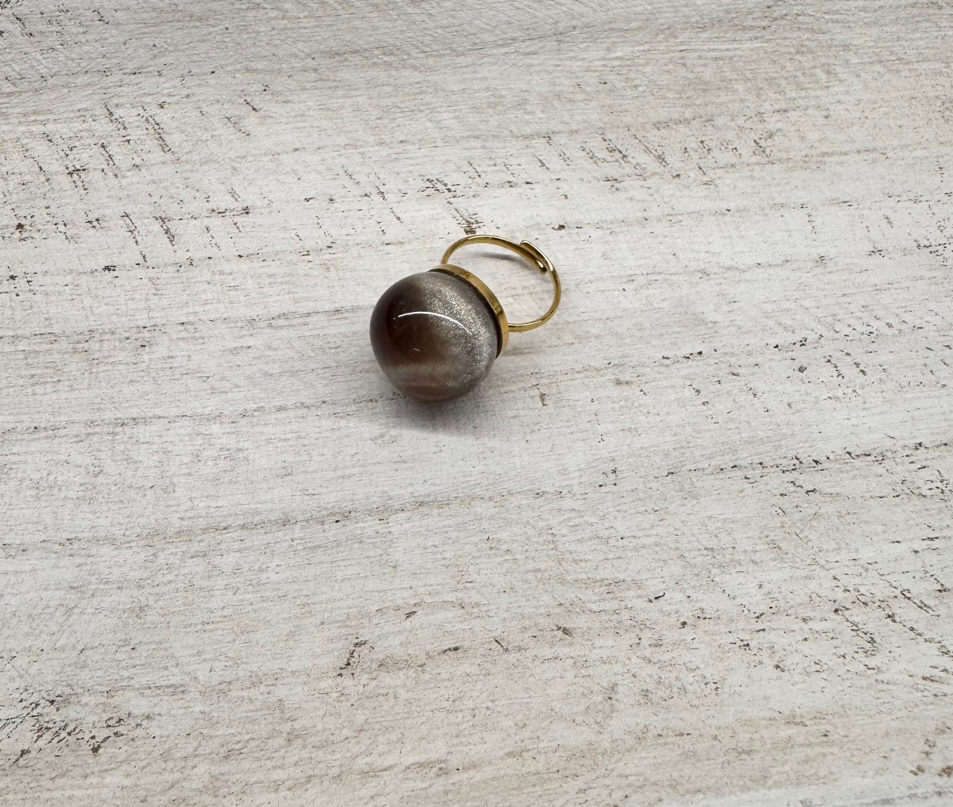 Anillo de acero con bolita de resina en color visón. Talla única ajustable.