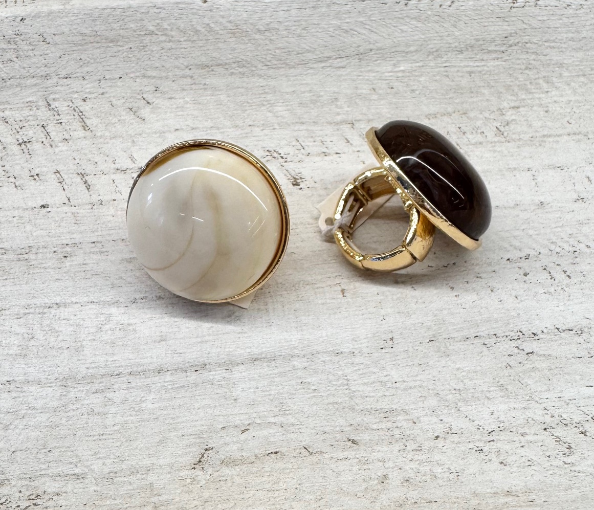 Anillo de alumino ajustable ya que es elástico. Pieza de resina que simula piedra.