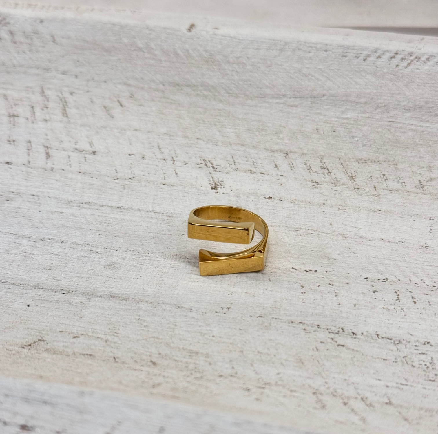 Anillo de acero dorado con boble barra. Talla única.
