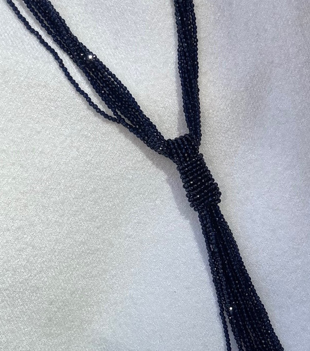 Collar largo de mini piedras en color azul marino.