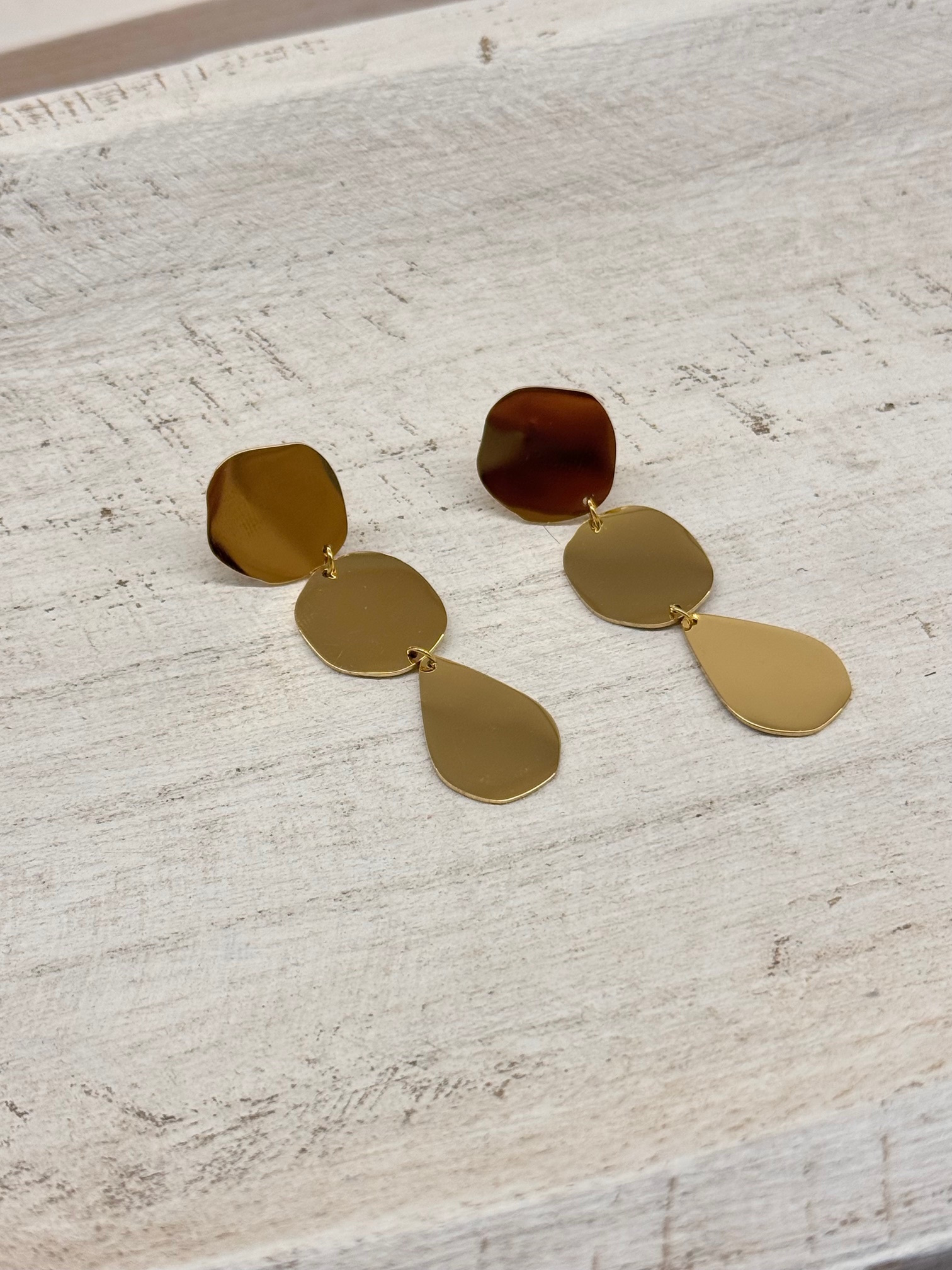 Pendiente de acero dorado con tres chapas (en movimiento)