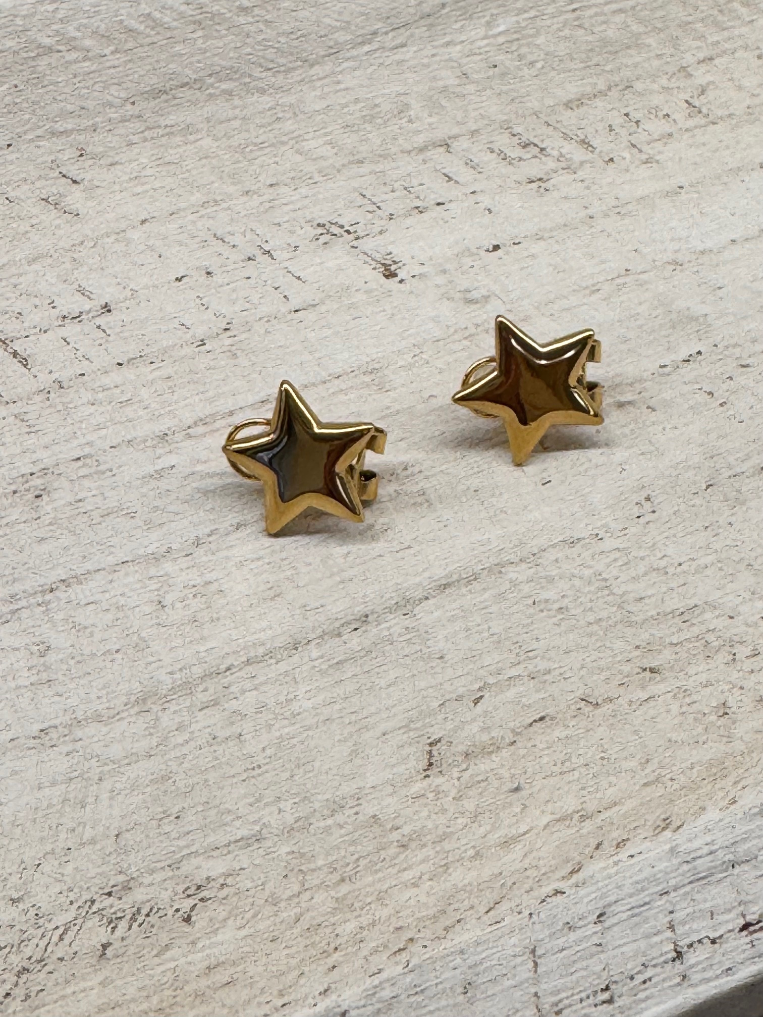 Pendiente dorado de acero en forma de estrella con cierre omega.