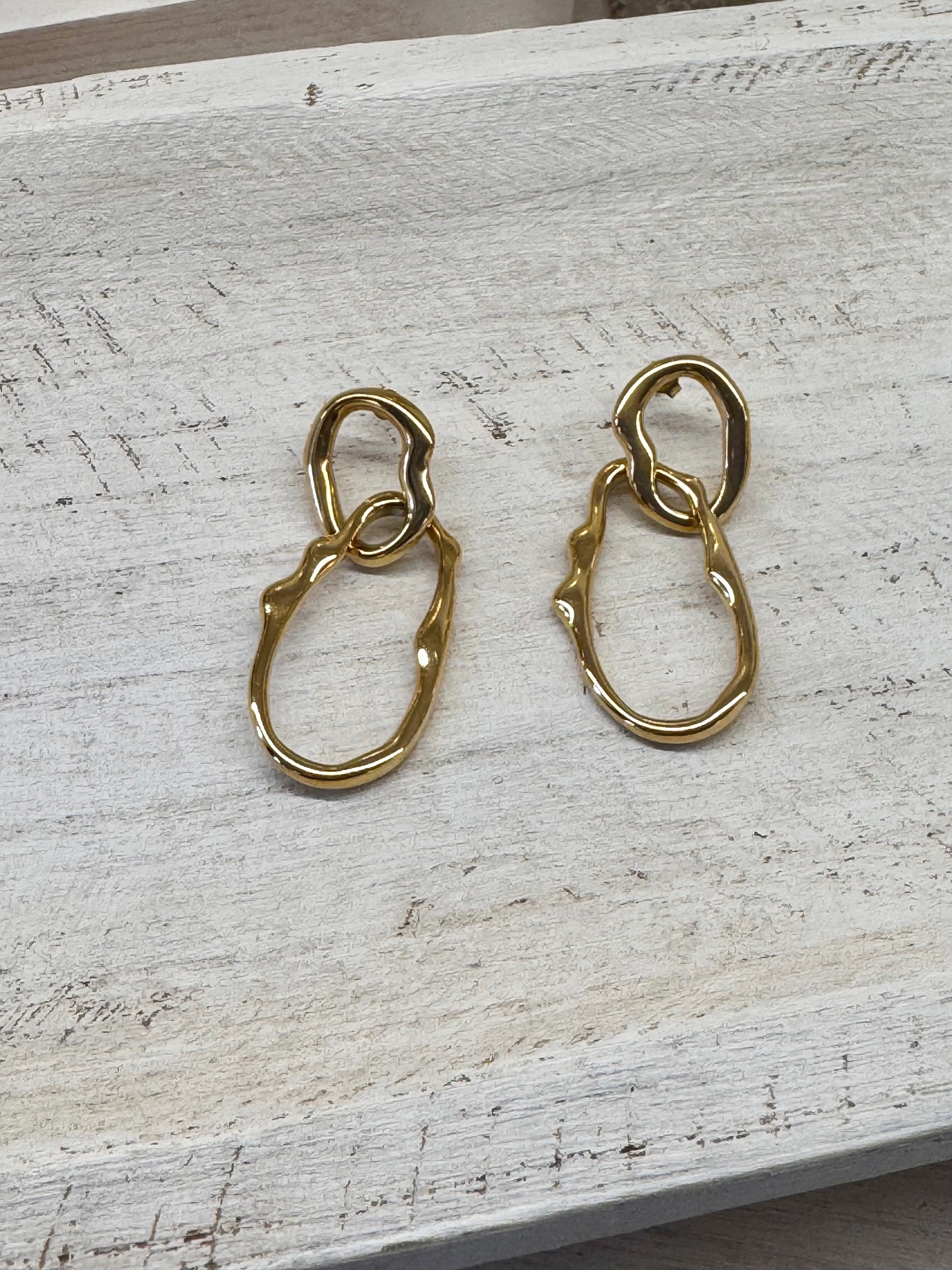 Pendiente dorado de acero con doble arandela.