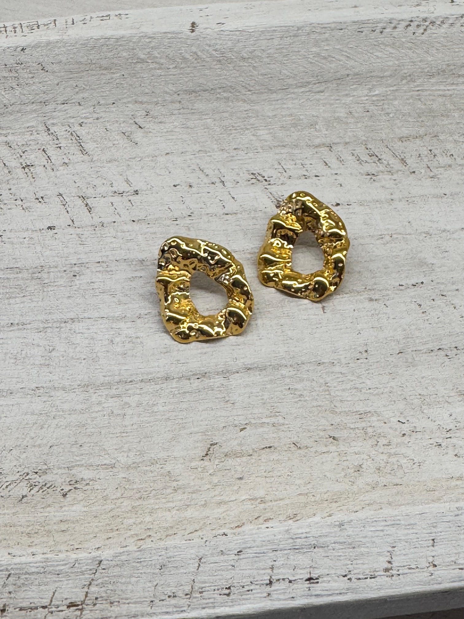 Pendiente de acero dorado en forma ovalada irregular,