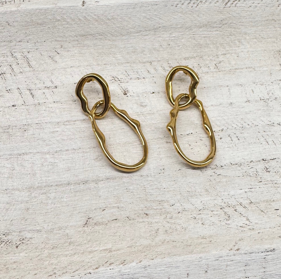 Pendiente de acero combinado con dos argollas. Una redonda irregular y otra ovalada.