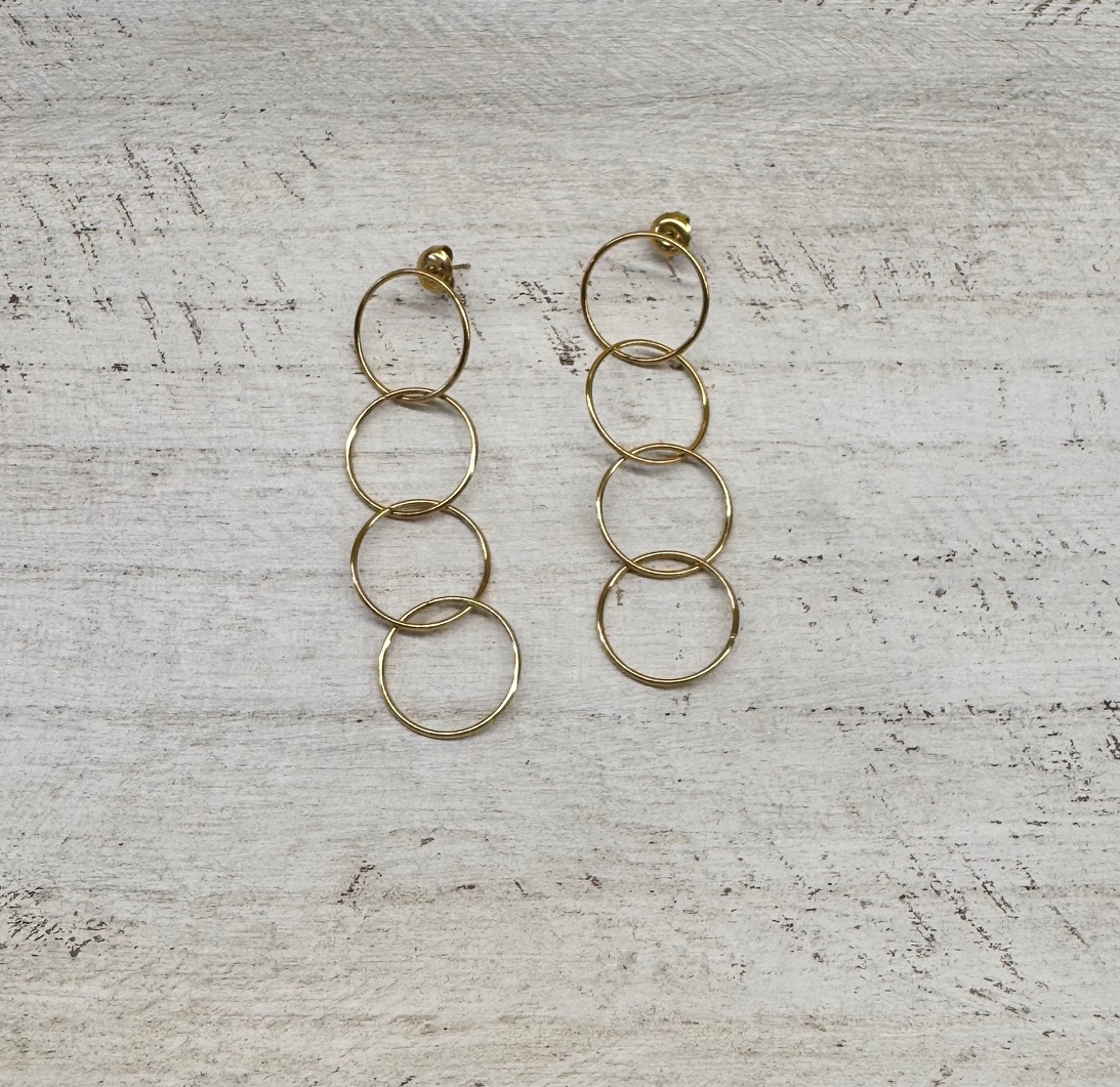 Pendiente largo de acero realizado con cuatro aros que tienen movimiento.