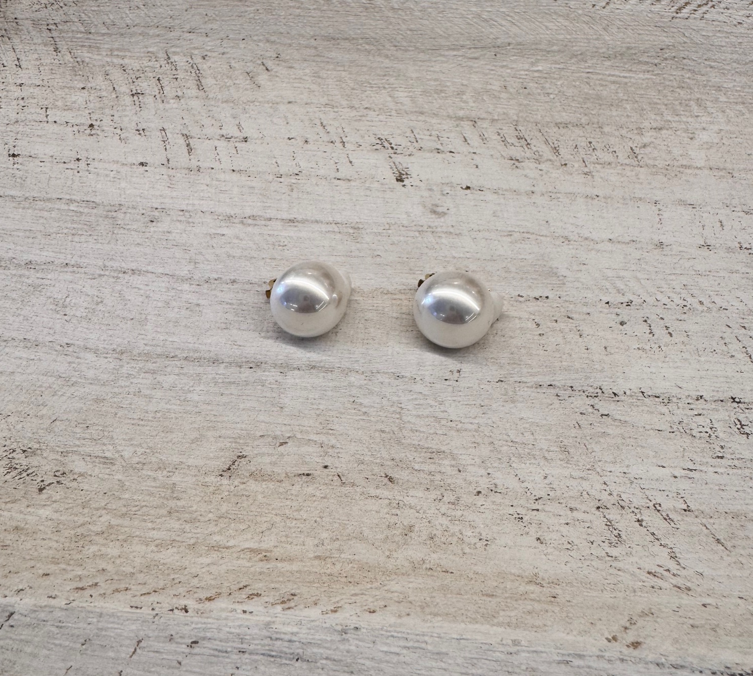 Pendiente de clip con almohadilla (sin pincho de agujero) con perla de bisutería. Parte trasera plana.
