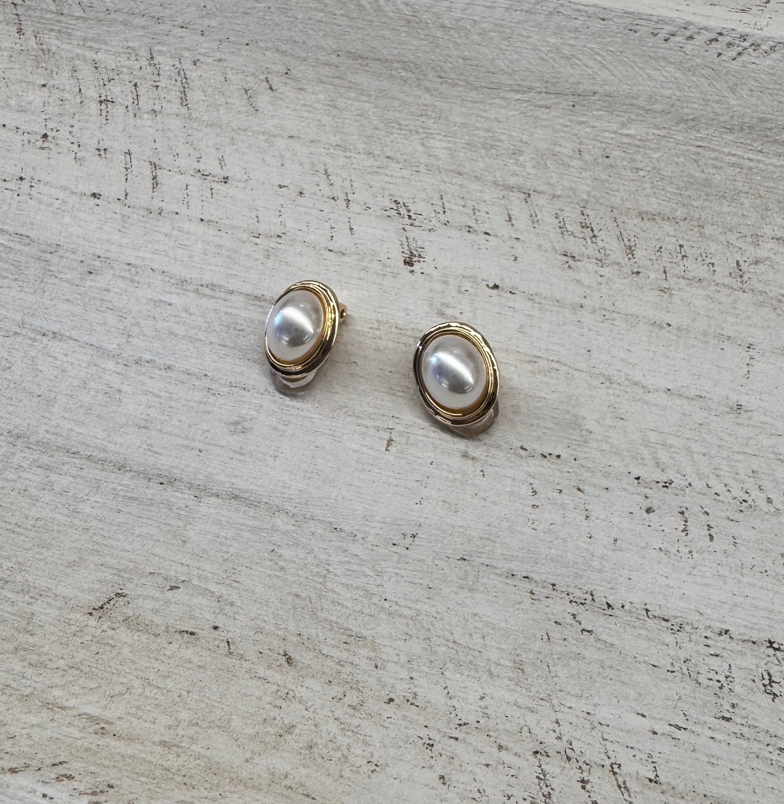 Pendiente de clip con almohadilla. Acero dorado con perla de fantasía.