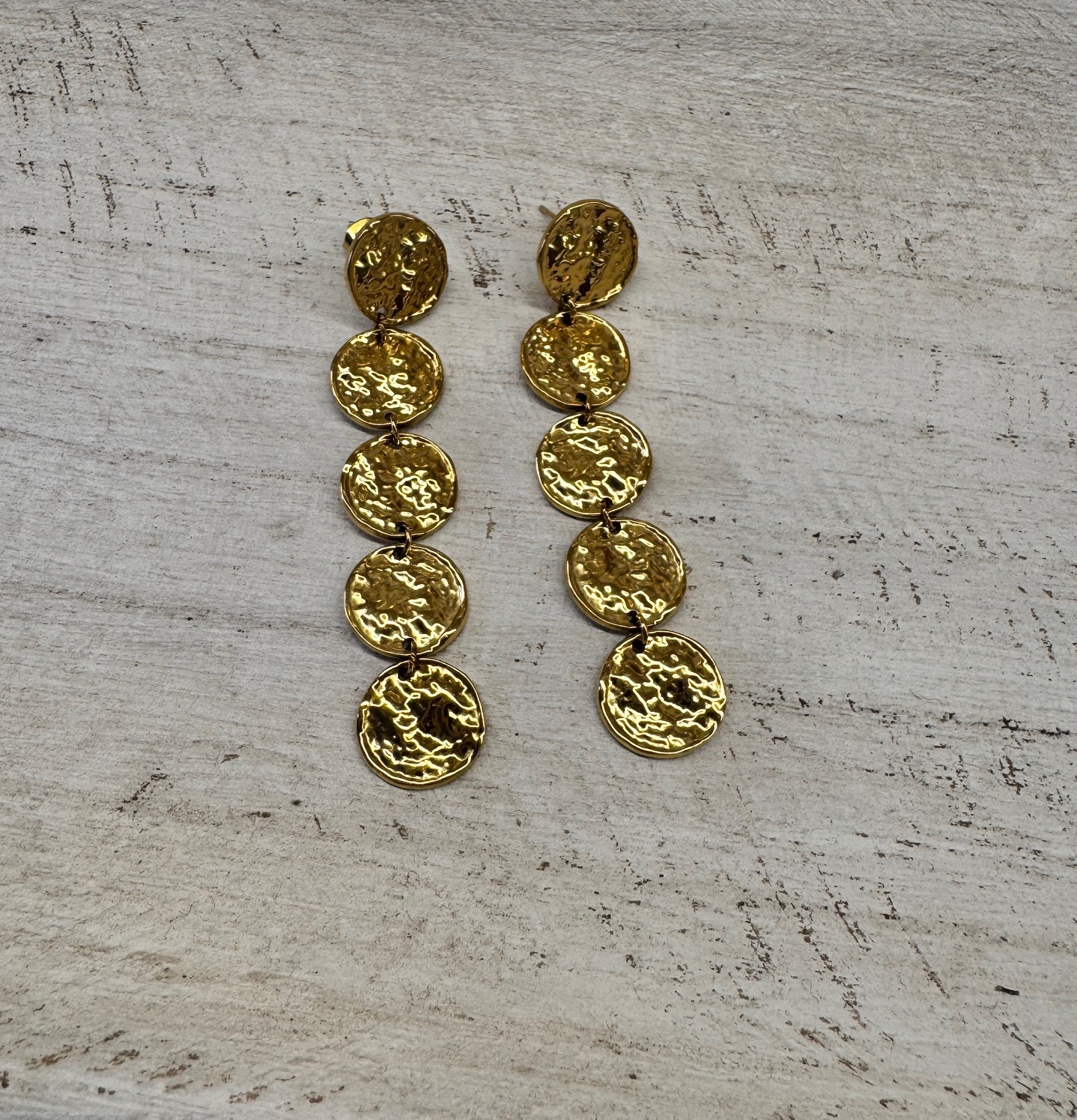 Pendiente largo de acero con 5 medallitas irregulares que tienen movimiento