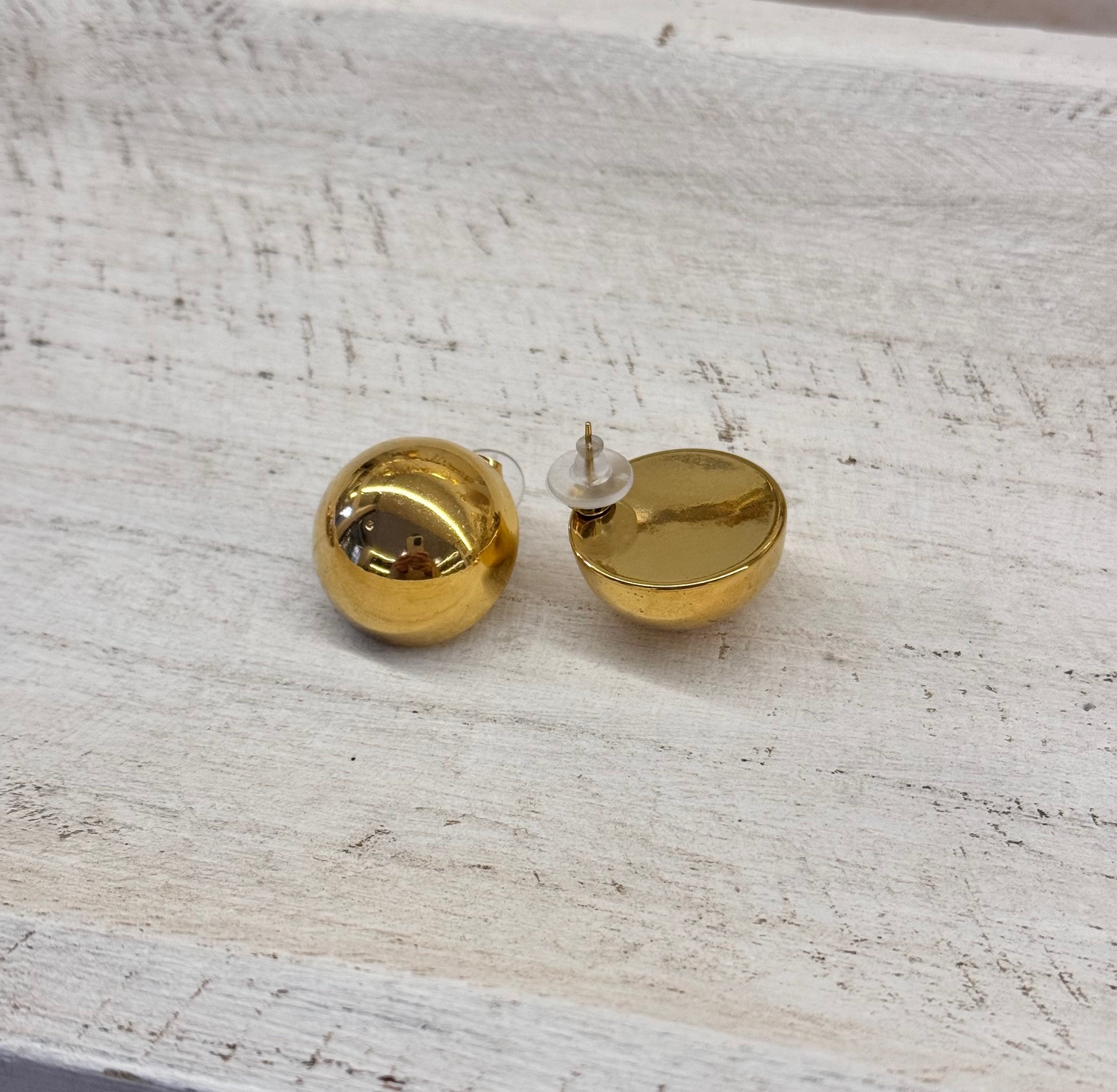 Pendiente dorado de acero en forma de media esfera.