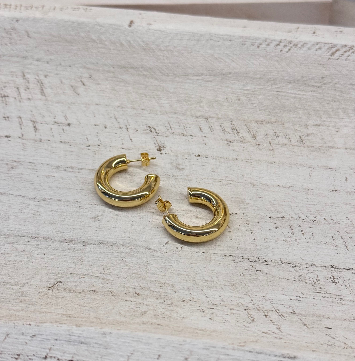 Pendiente dorado de acero. Aro tubular hueco de peso muy ligero.