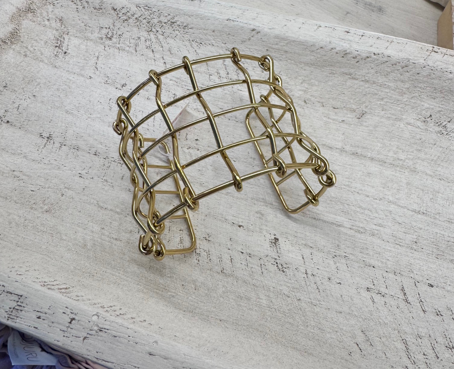 Esclava ancha de acero tipo reja con cuadraditos irregulares.