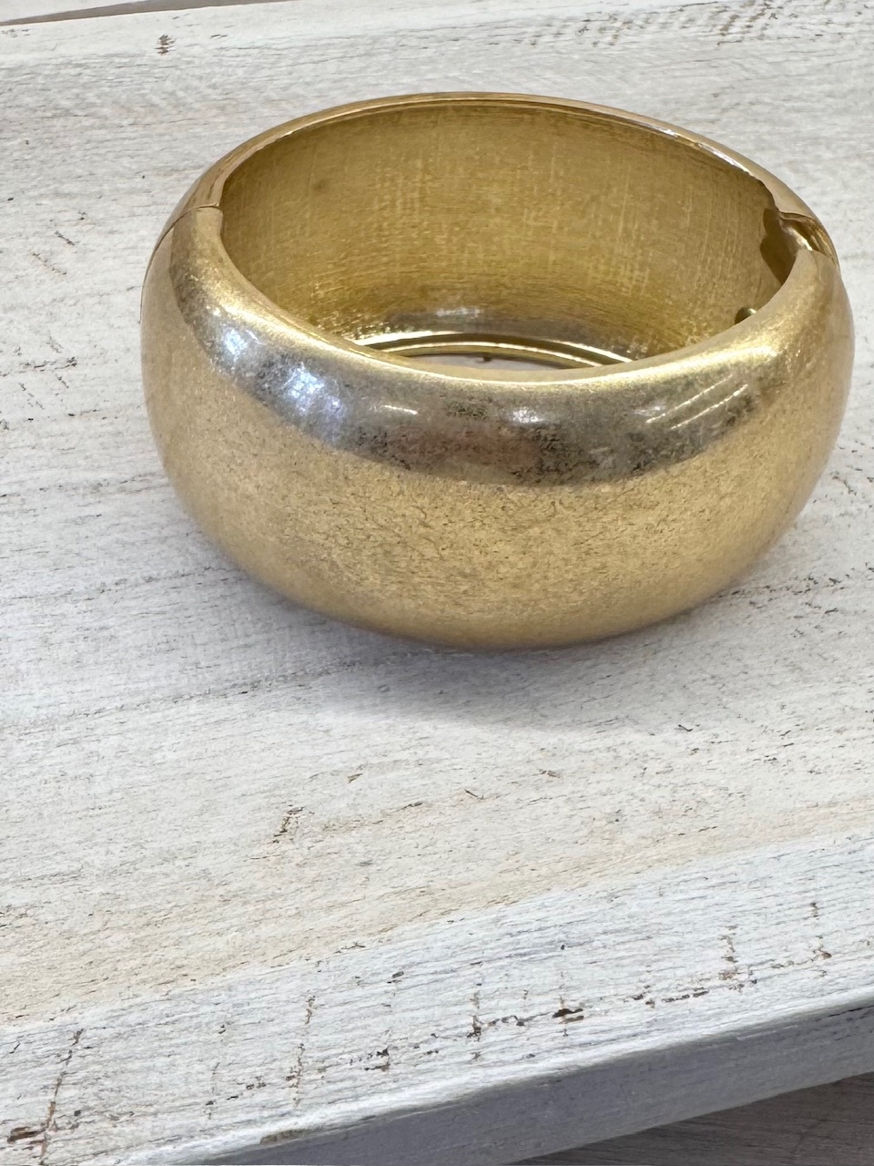 Pulsera rígida en dorado mate. Obertura por el lateral. Talla única.