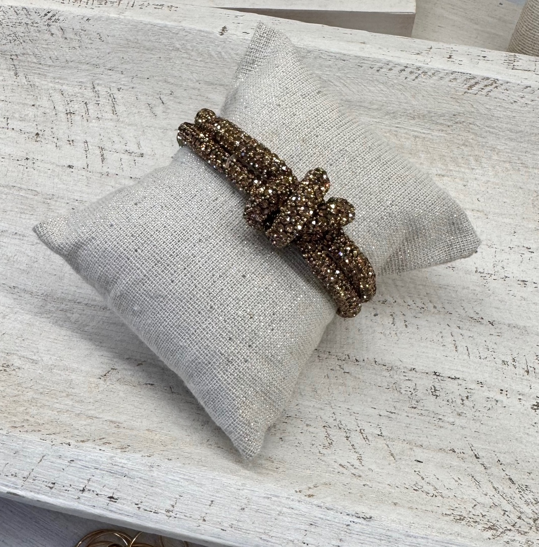 Pulsera de fantasía con brillantes en color marrón caramelo. Cierre con imán.