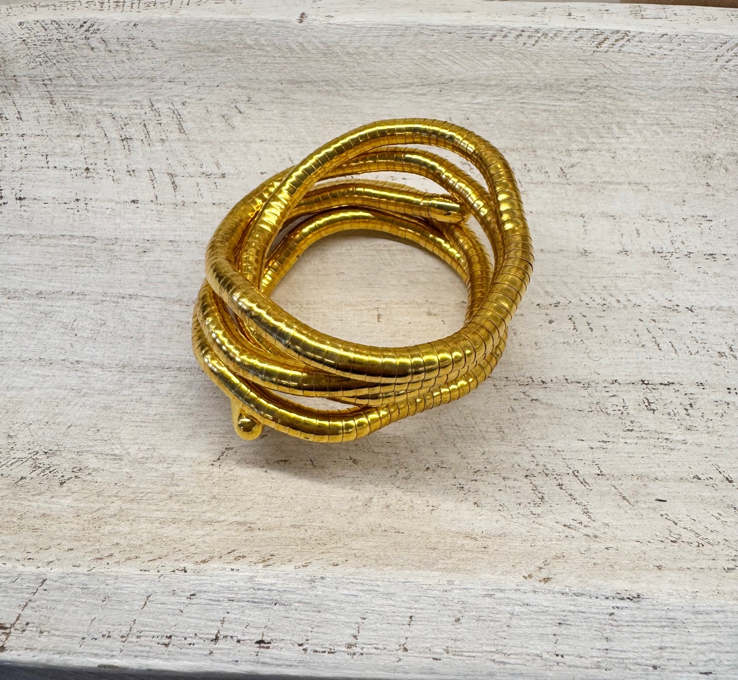 Pulsera semi rígida sin cierre que puedes adaptarla a tu muñeca o llevarla como collar.