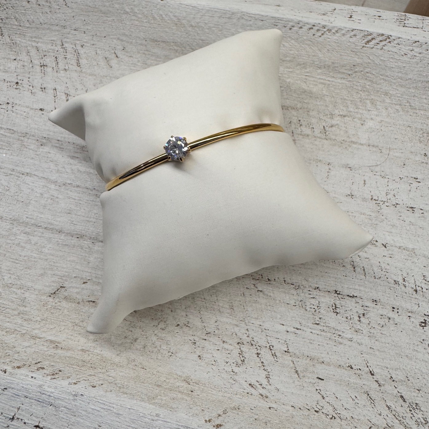 Pulsera esclava abierta por la parte trasera con circonita redonda.