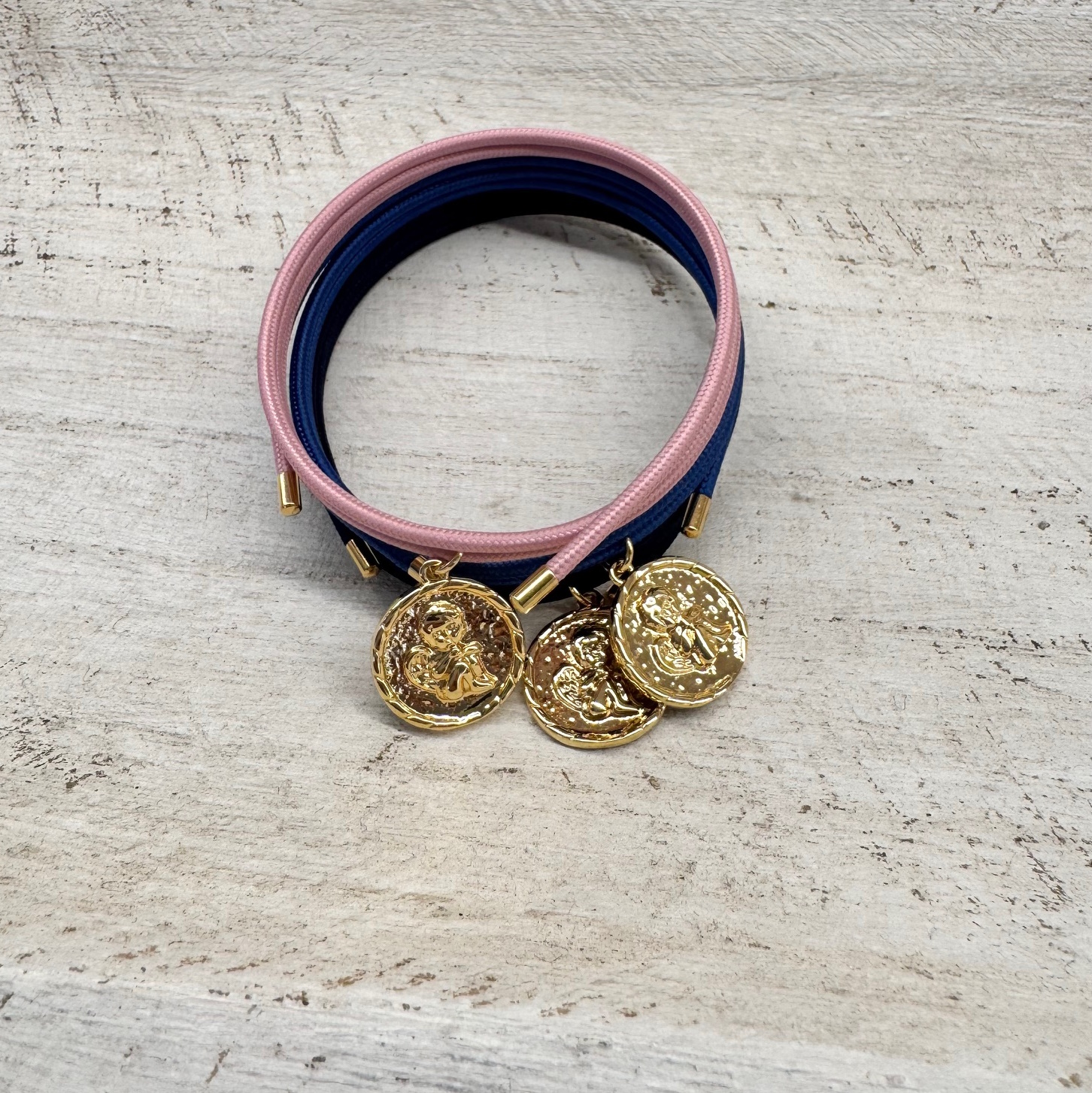Pulsera con medalla de Angel de la Guarda. Cordón redondo imantado que puedes ajustar a tu medida y llevarla como gargantilla.