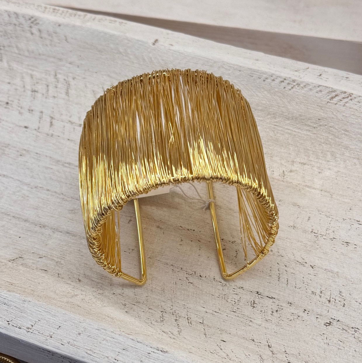 Pulsera nacha de acero con hilos que la envuelven. Talla única.