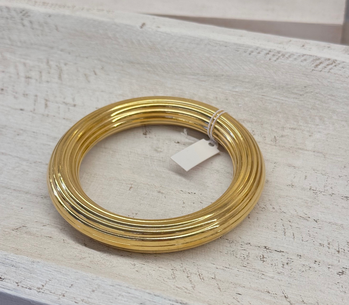 Esclava dorada de acero rayada. Talla única.