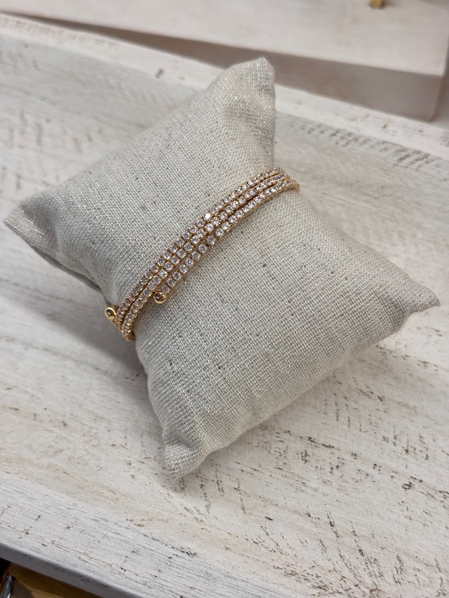 Pulsera triple tipo muelle con circonitas.