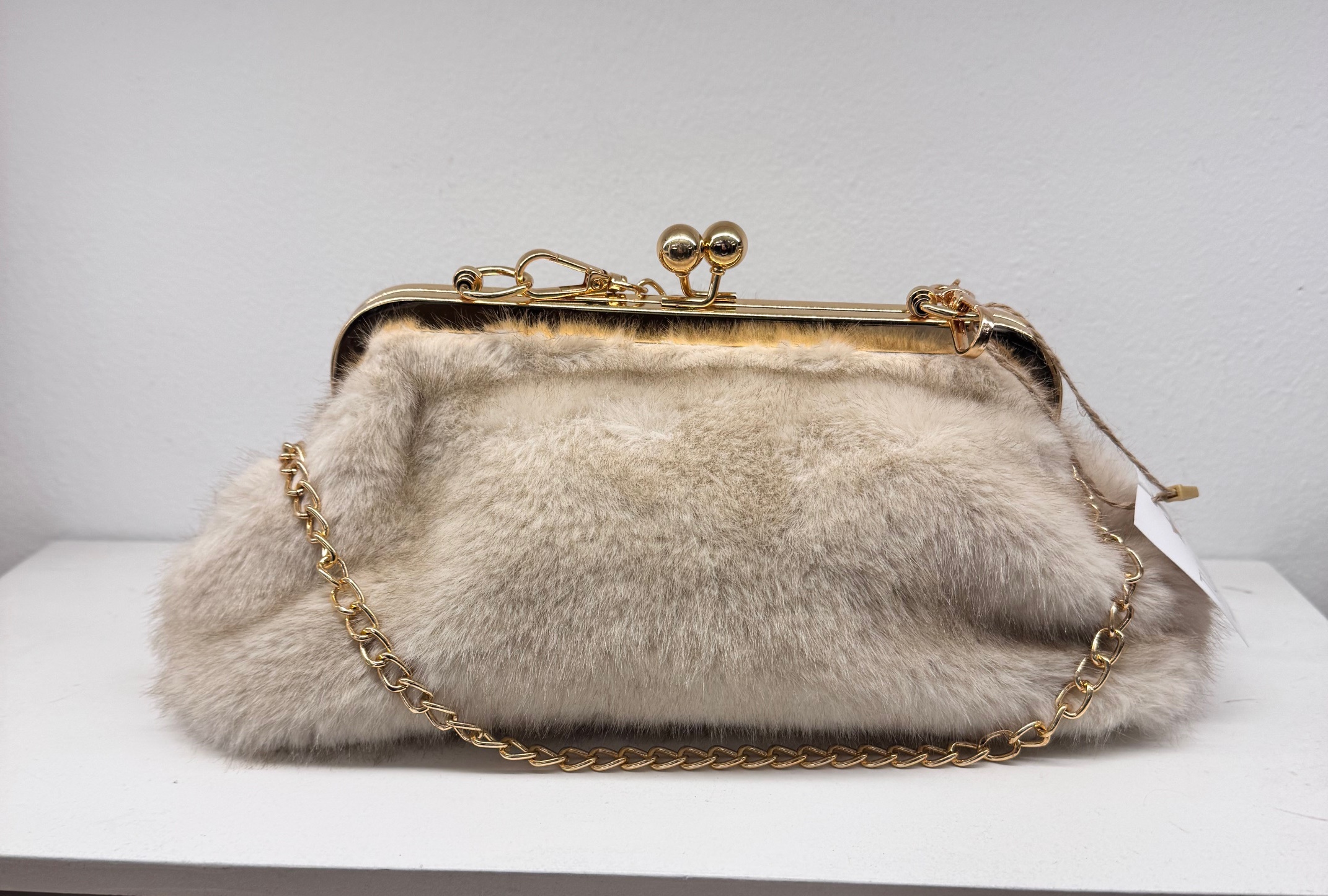 Bolso de pelito sintétco con cierre de clip y cadena fina dorada. Tacto muy suave.