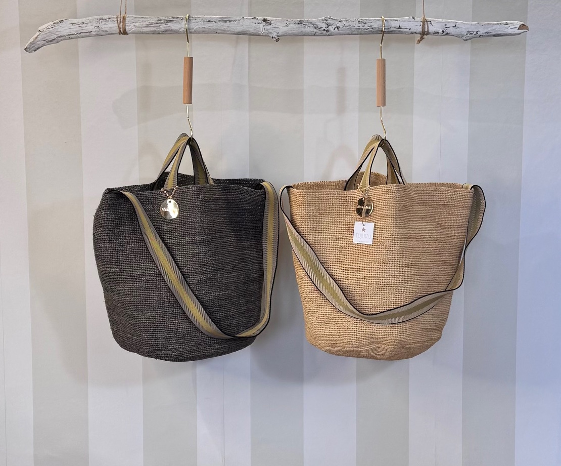 Maxi bolso de rafia tupida con doble asa.