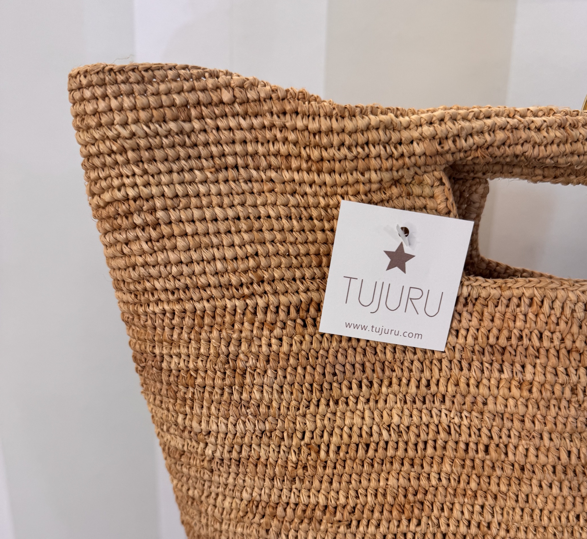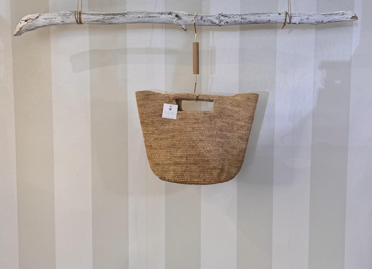 Bolso de mano realizado en rafia. Muy ligero.