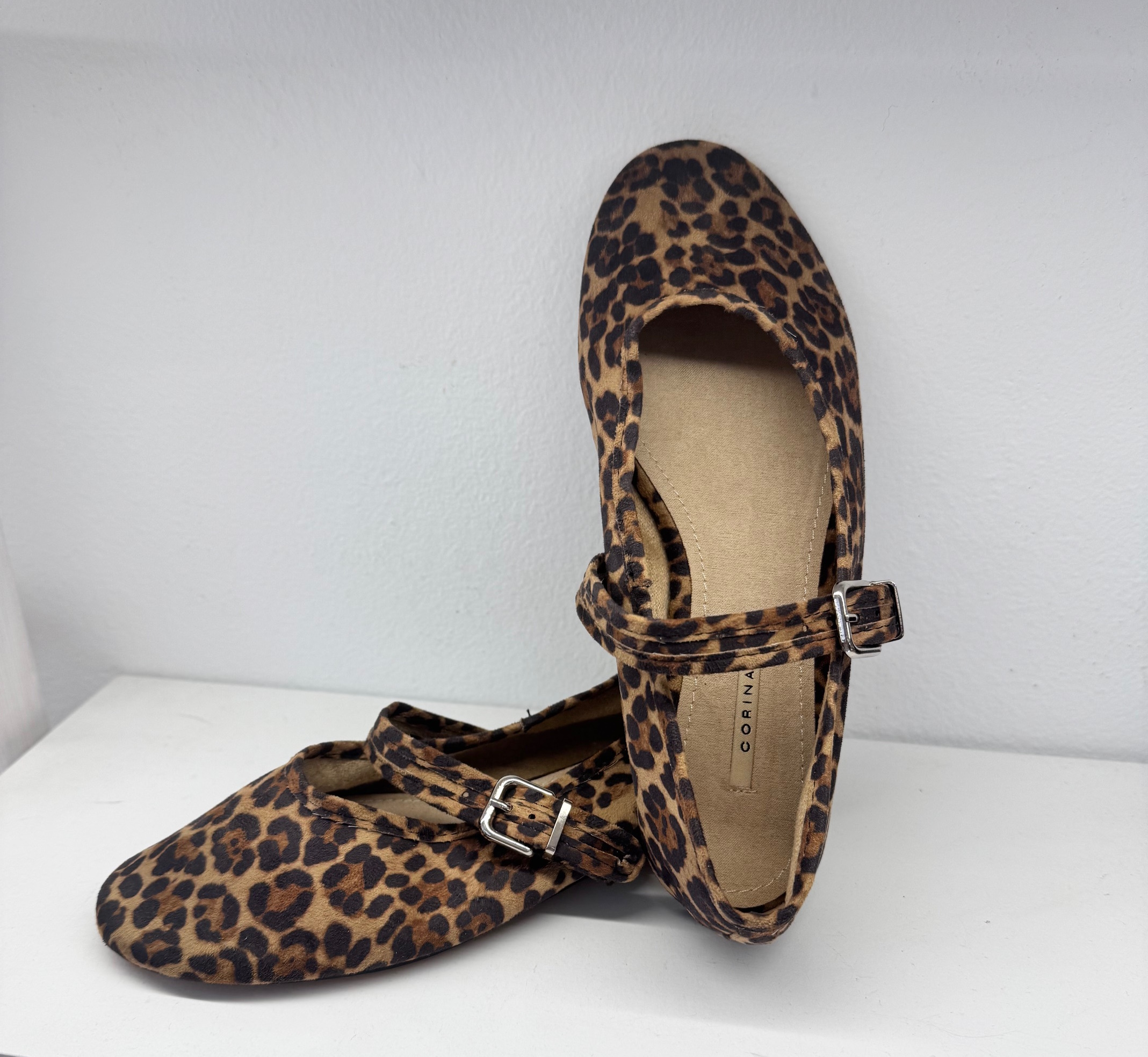 Mercedita de ante con estampado animal print. Textura blandita y cómoda.