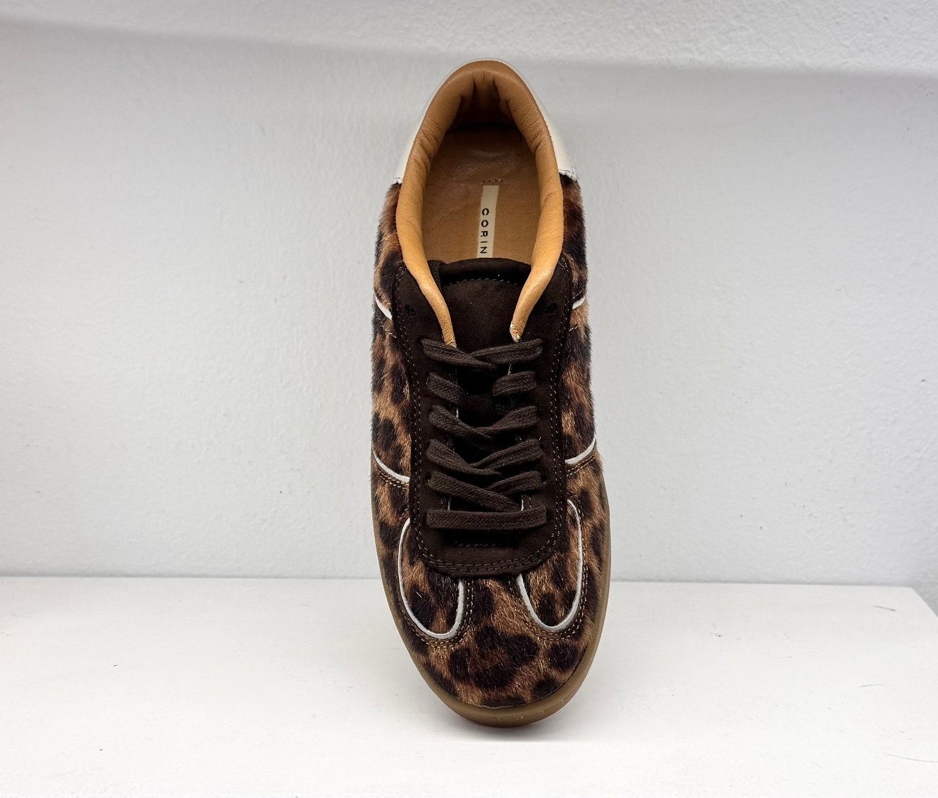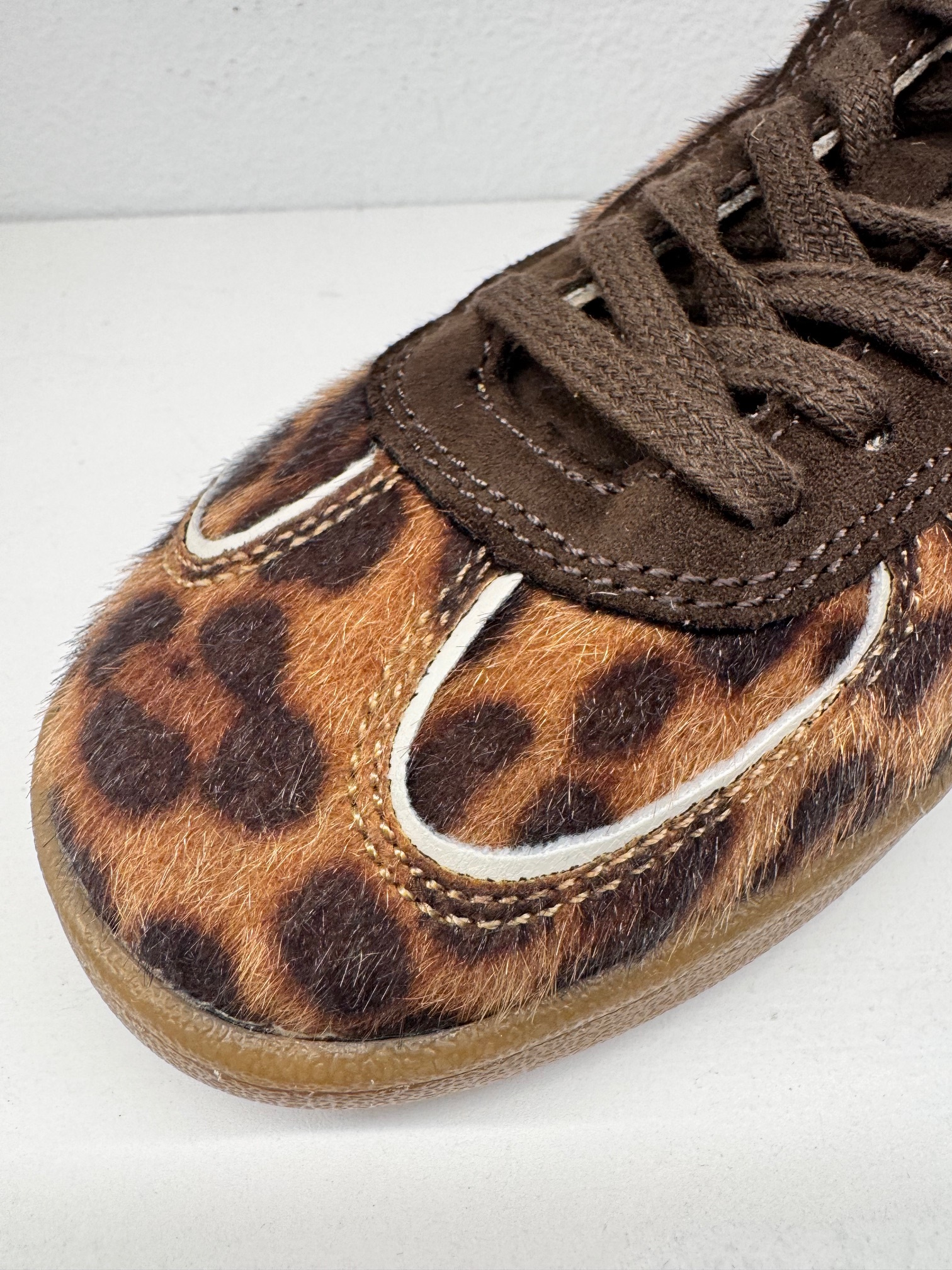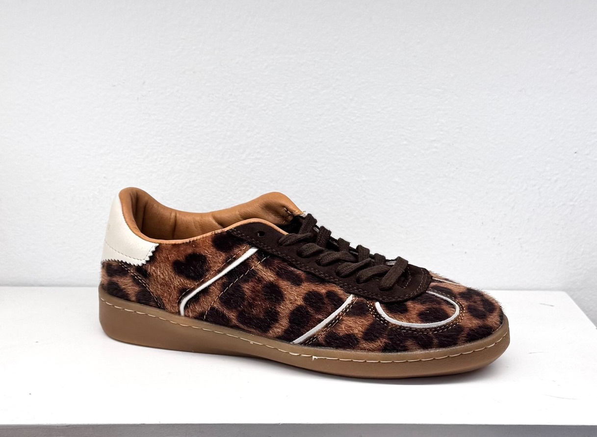 Bambas de pelito con estampado animal print y cordones en marrón chocolate.