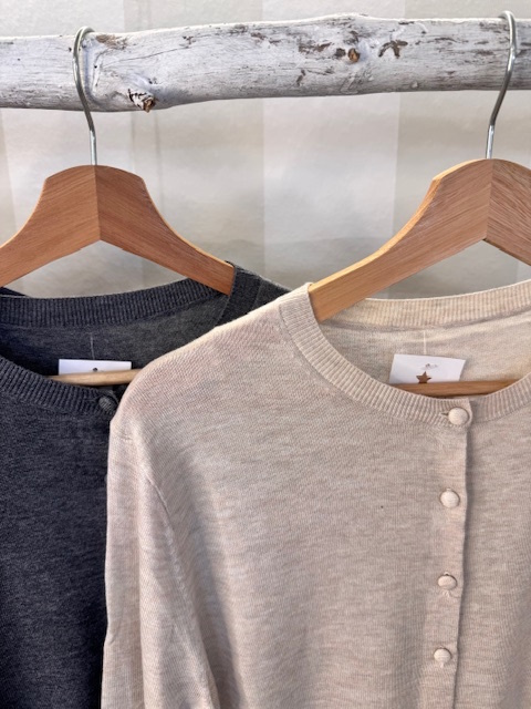 Chaqueta fina de punto con cuello redondo y botones forrados. Talla única.