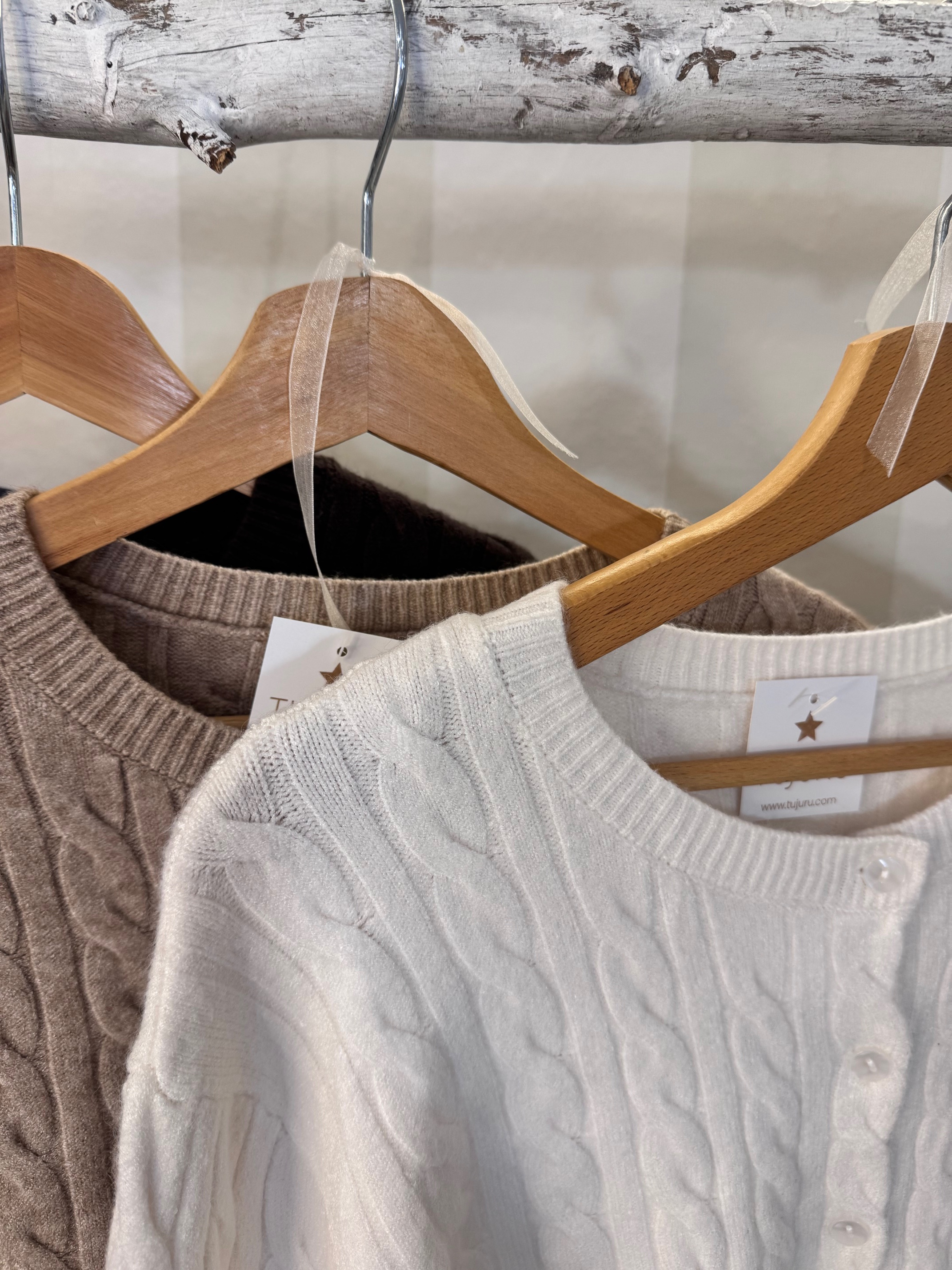 Chaqueta de canalé trenzado con tacto muy espomjoso. Talla única. Grosor medio grueso.