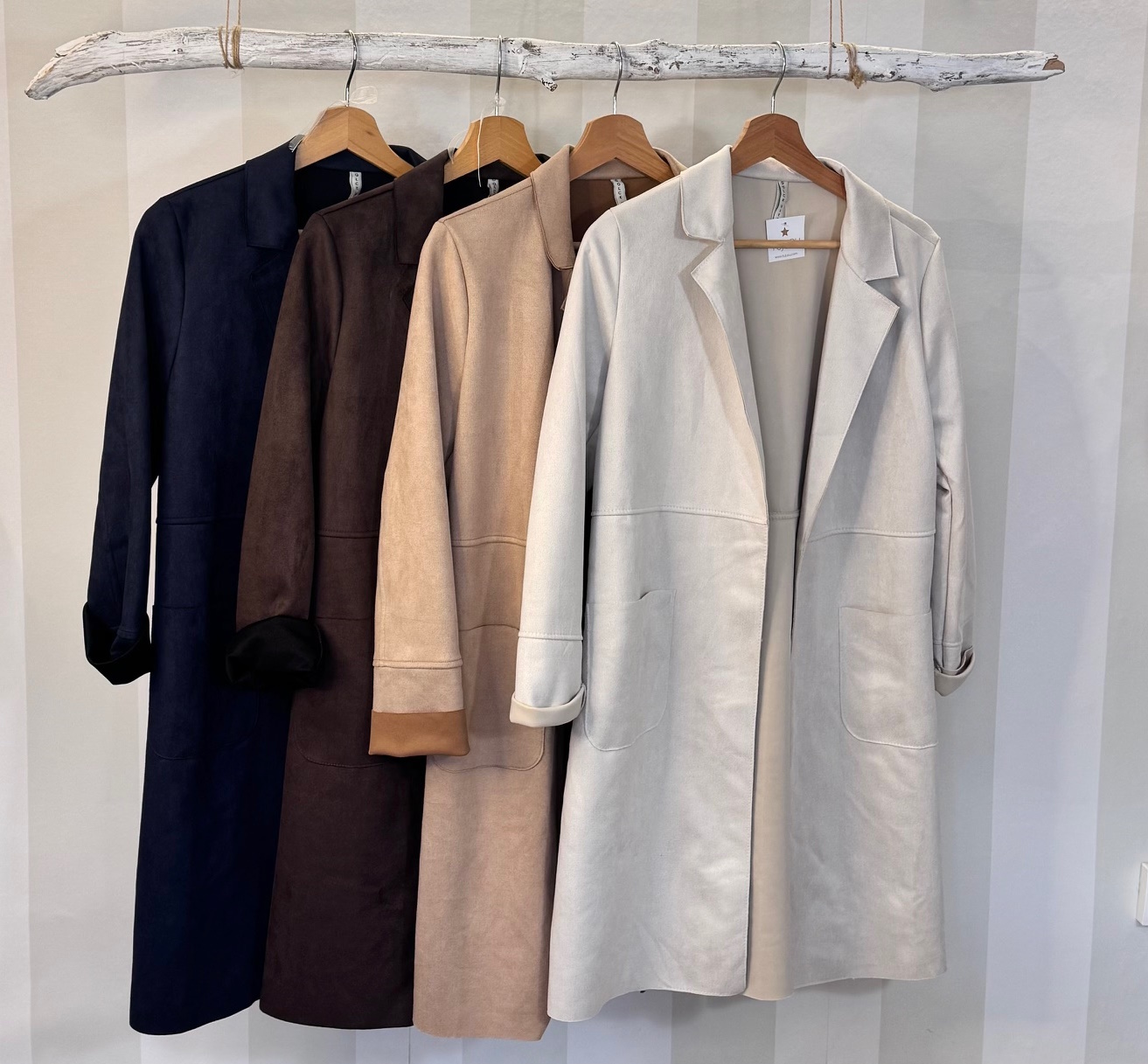 Chaqueta de antelina fina sin botones, Tacto muy suave. Largo aprox levita. Talla única, al no cerrar se adapta bastante bien a las tallas.