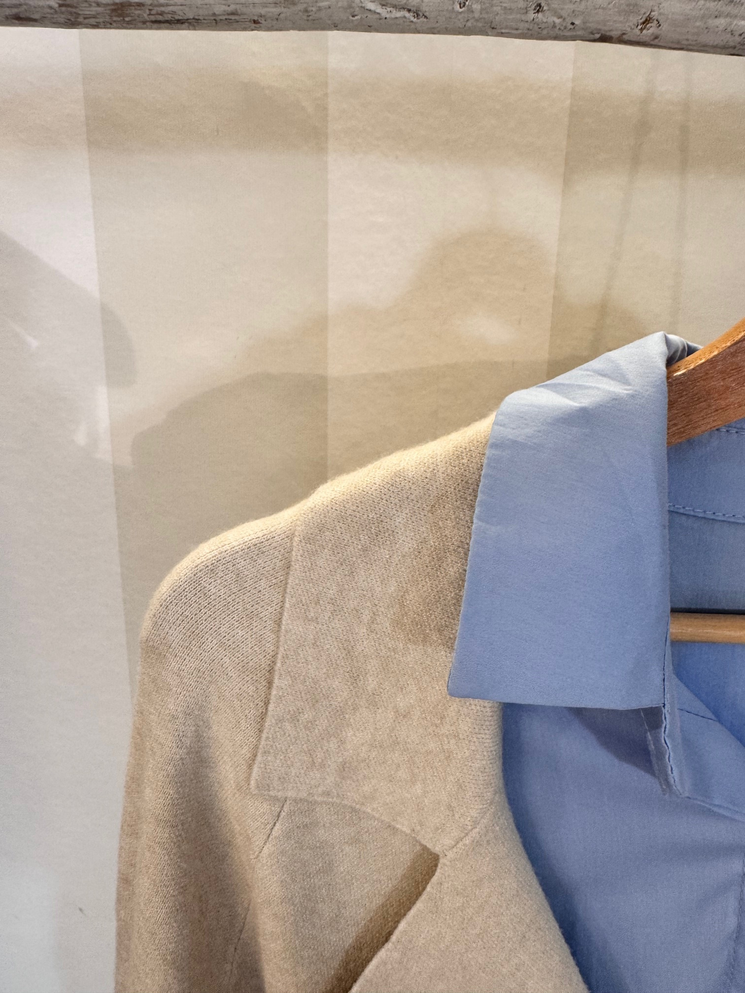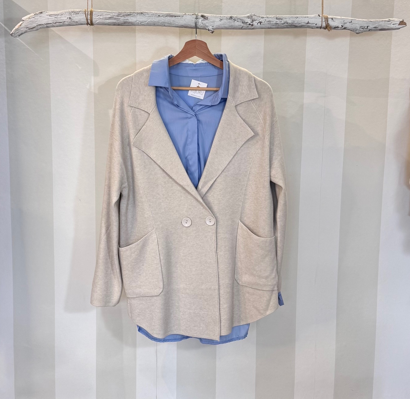Chaqueta de punto medio larga oversize con solapa y bolsillos. Tacto muy agradable. Talla única.