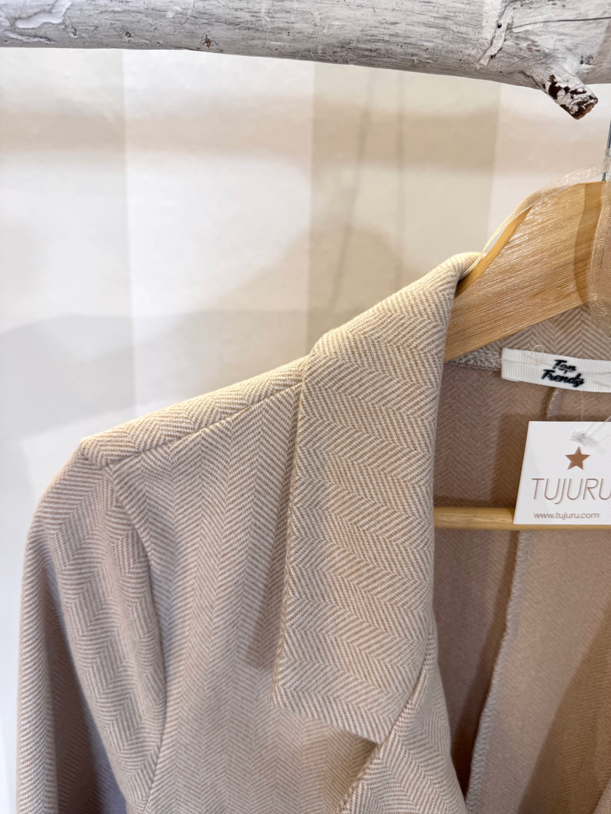 Blazer beige espigado de grosor medio con tacto muy agradable. Falso bolsillo.