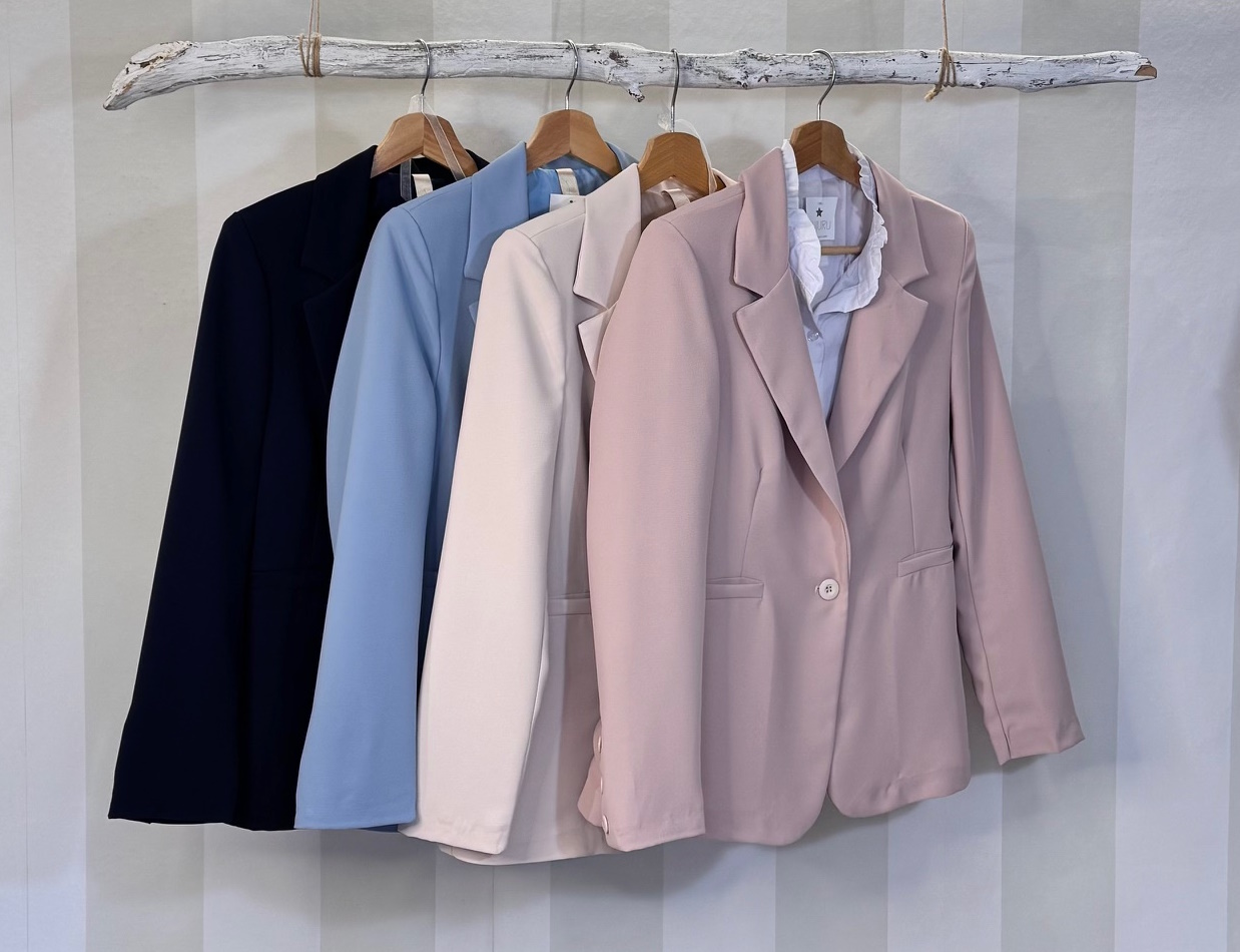 Blazer básico con forro interior. Falsos bolsillos. Género fluído con bastante caída.