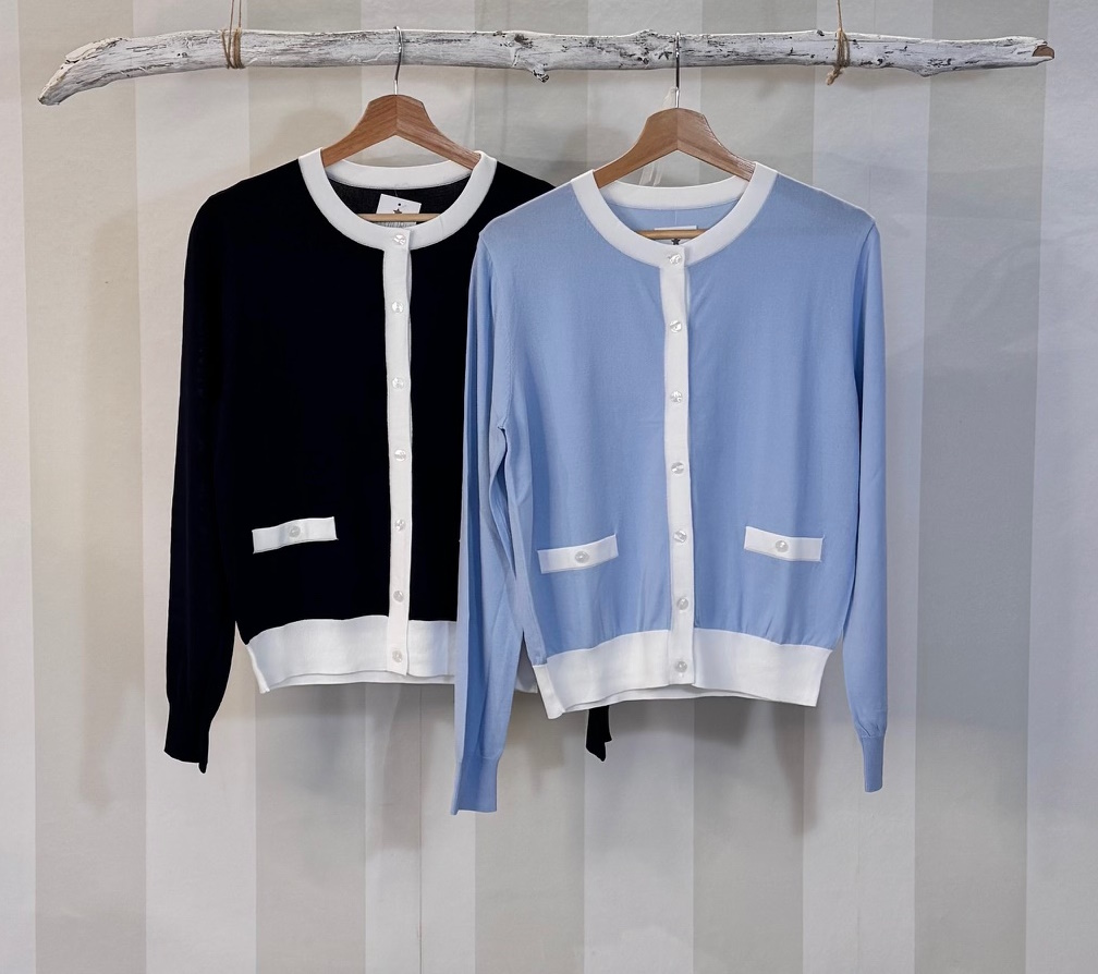 Chaqueta fina de punto frío combinada en dos colores. Talla única.