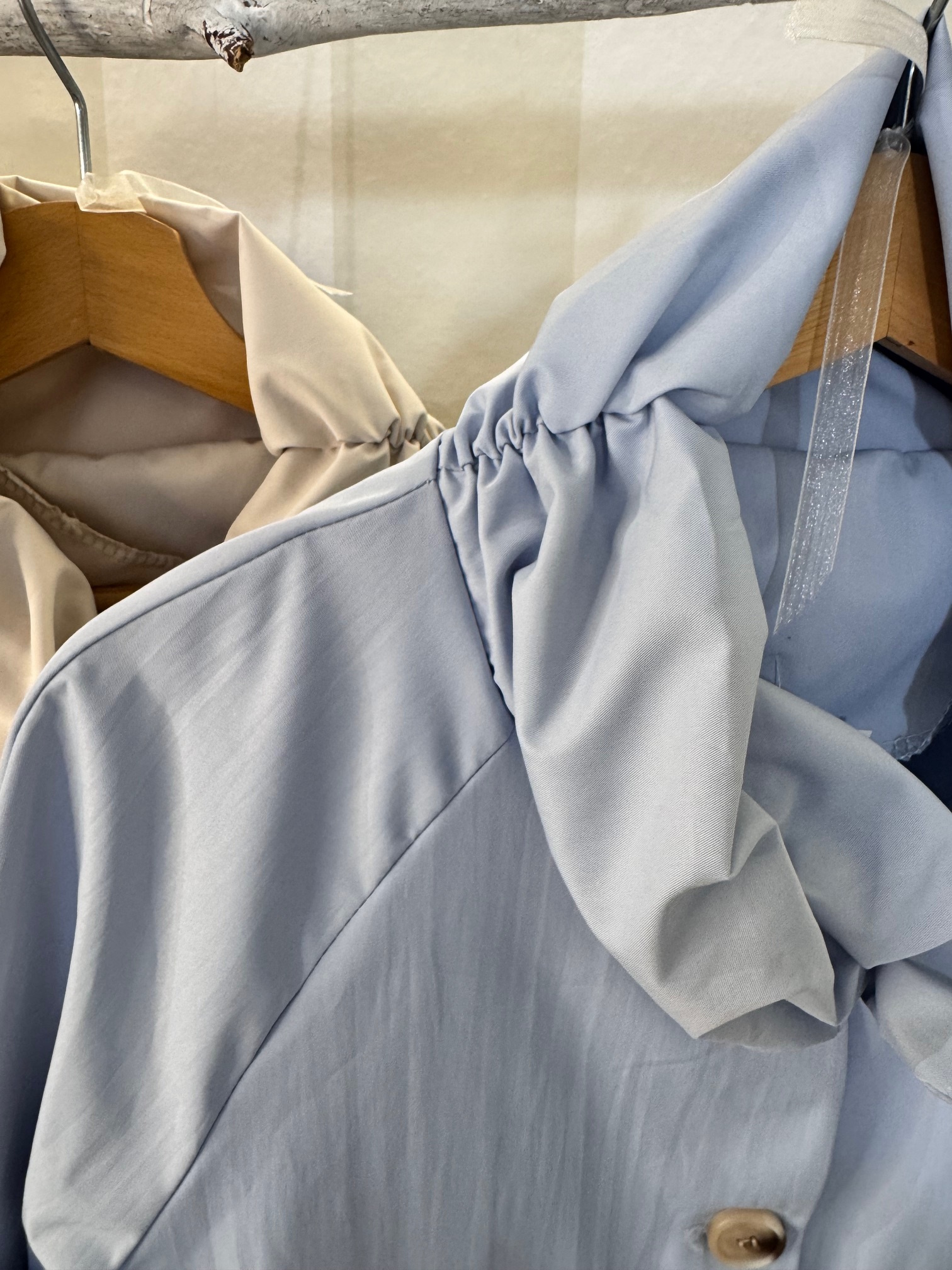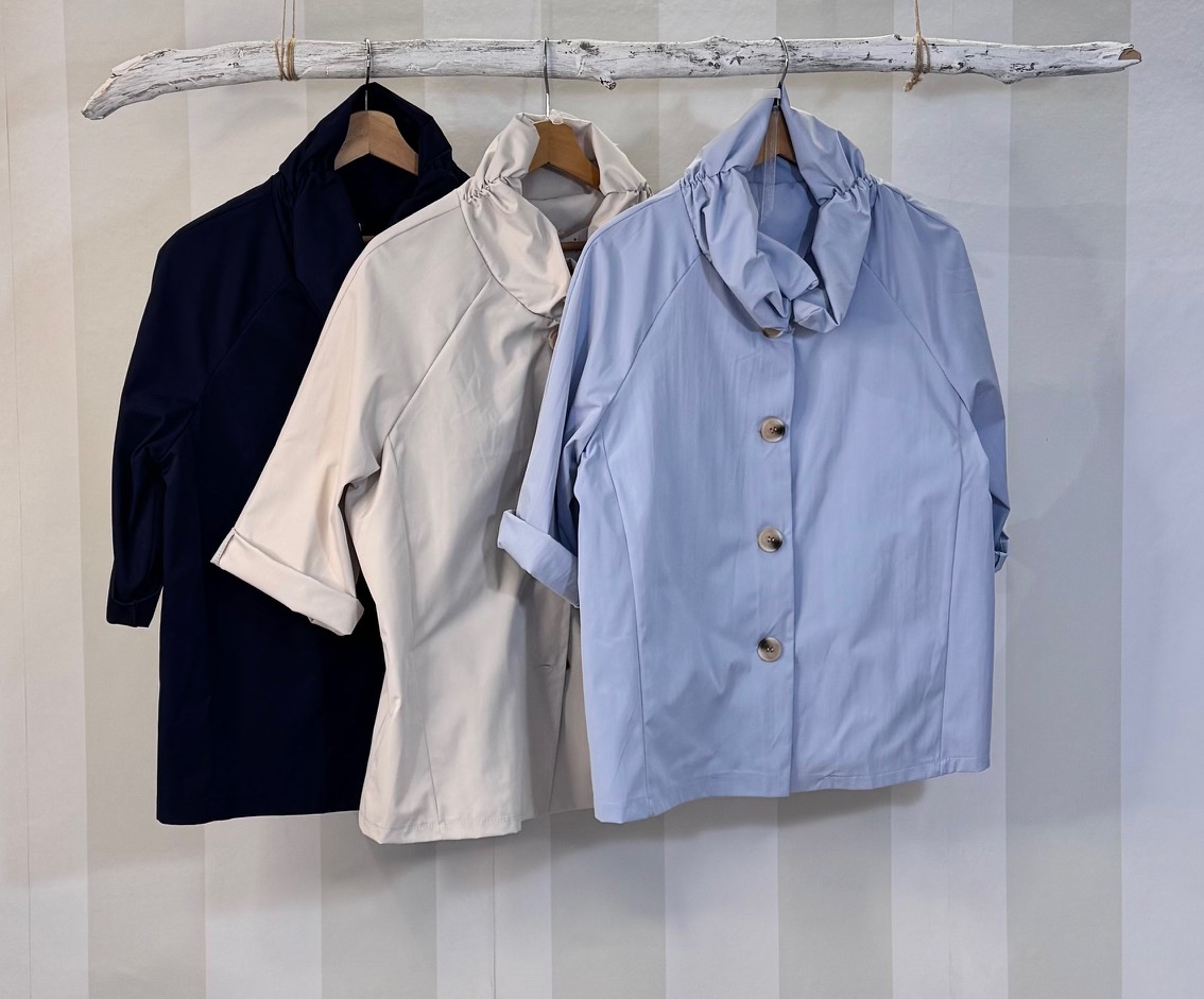 Chaqueta fina tipo para viento con cuello fruncido y maga francesa. Talla única. Ligera forma evasé.