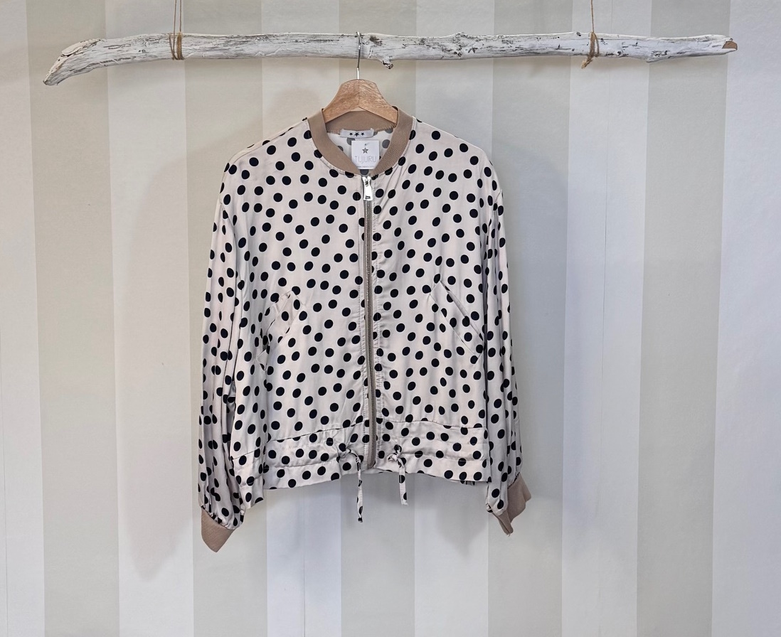 Chaqueta estilo bomber con topos. Tejido tipo raso. Talla única.