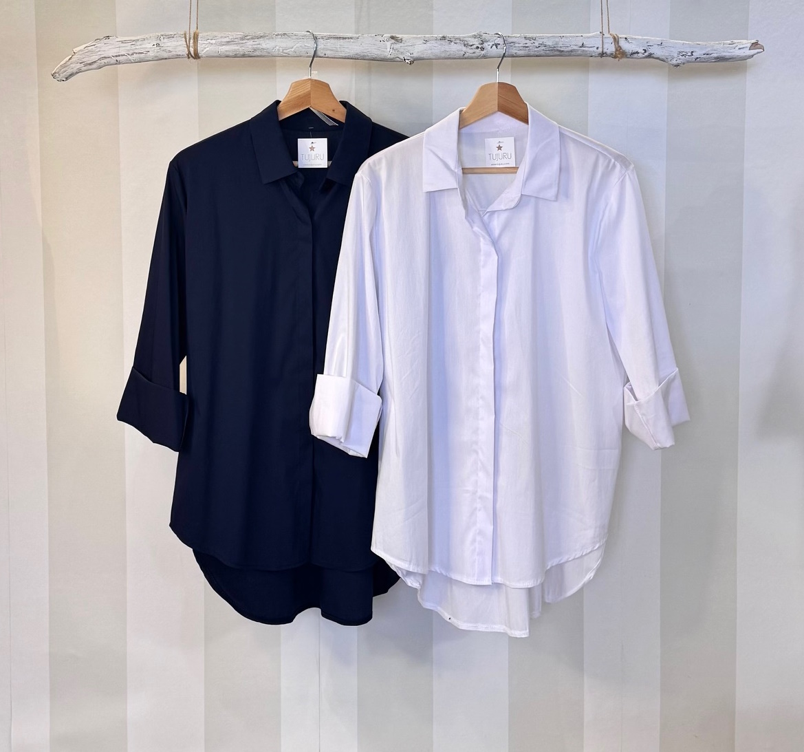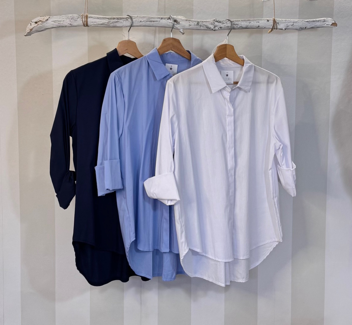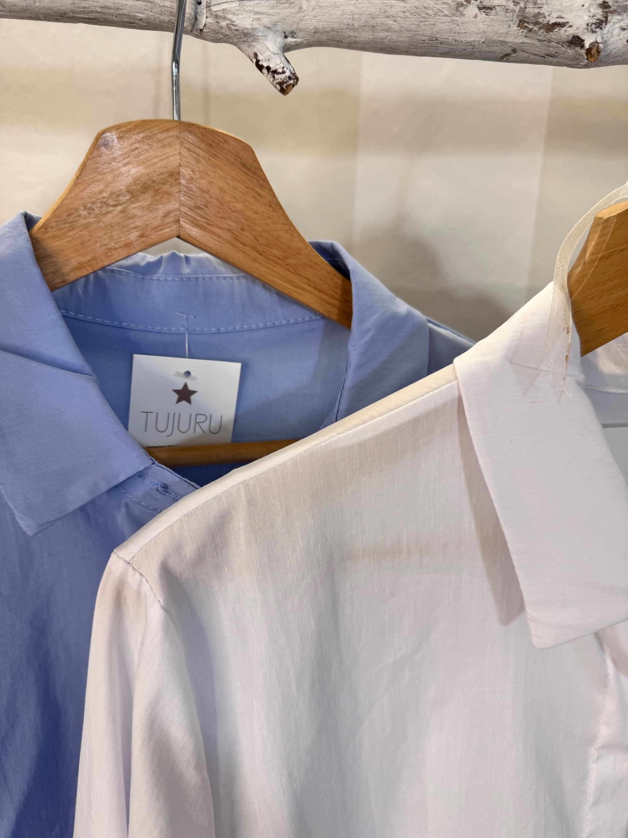 Camisa básica de popelín. Modelo maxi que queda más largo por la parte trasera.
