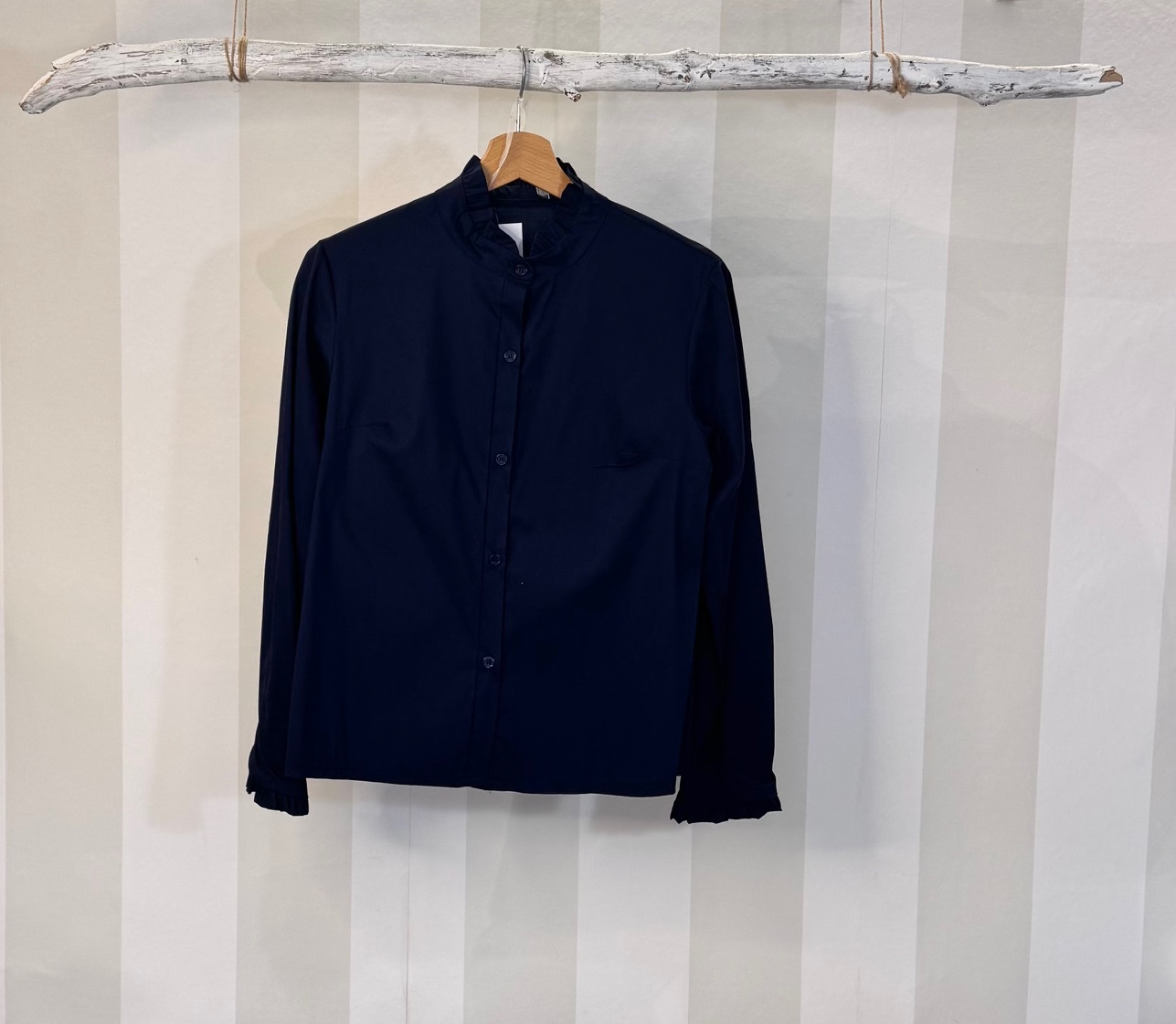 Camisa básica de algodón. Cuello y puños rizados. Talla única (aprox mediana)