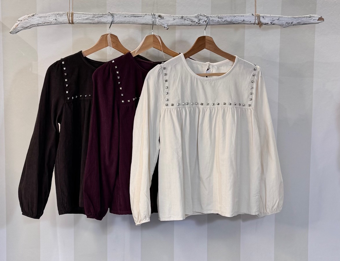 Camisa de micro pana con tachuelas. Talla única (no muy larga) Ligera forma evasé.