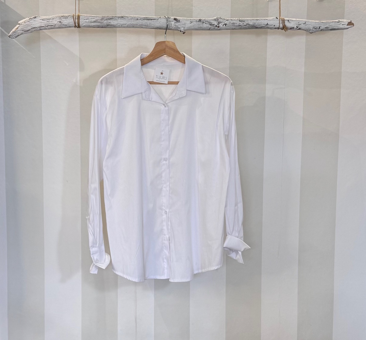 Camisa básica de tacto muy agradable. Igual de larga por delante y por detrás.