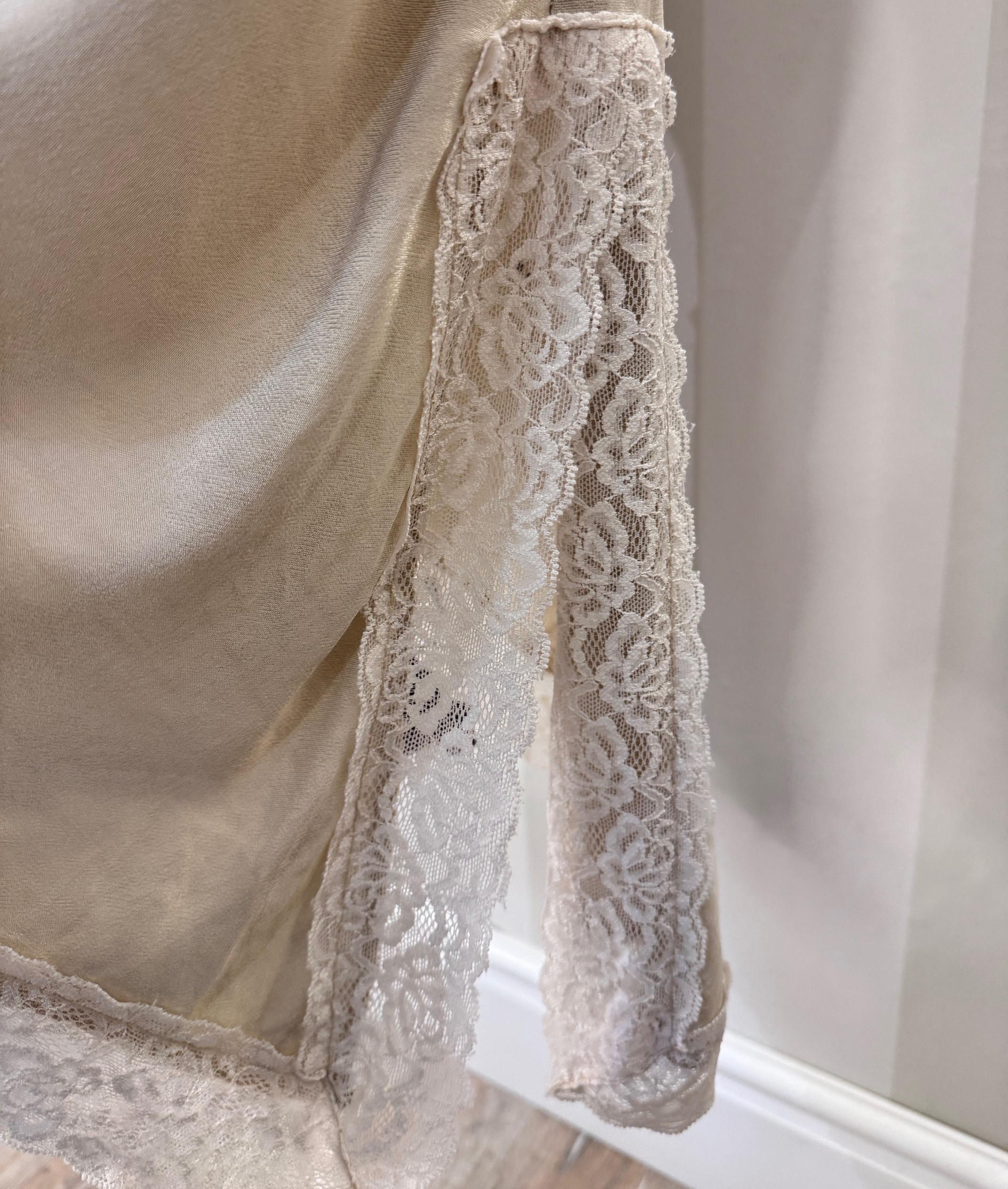 Lencero asimétrico acabado en punta. Tacto suave. Tirantes ajustables. Talla única adaptable porque tiene ligera forma evasé y goma en la espalda. Obertura lateral.