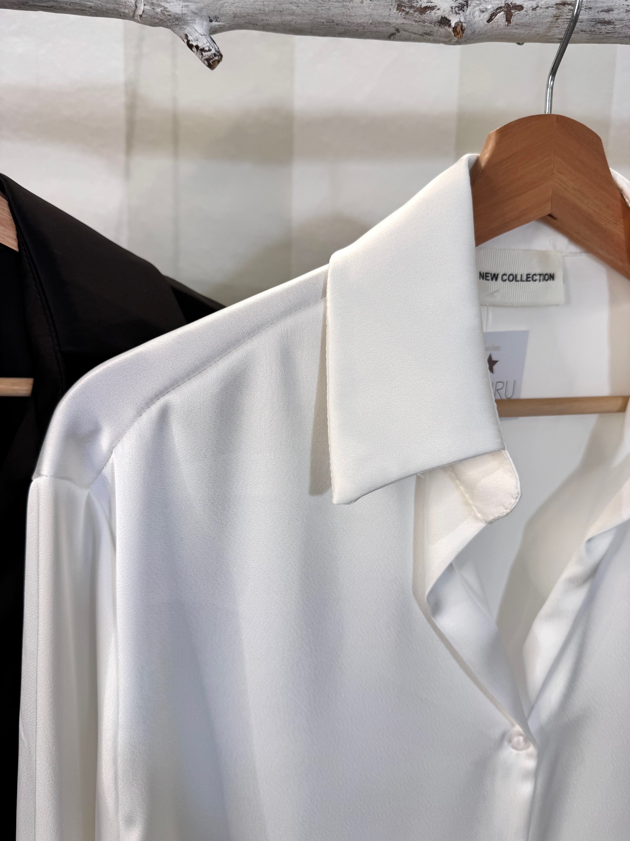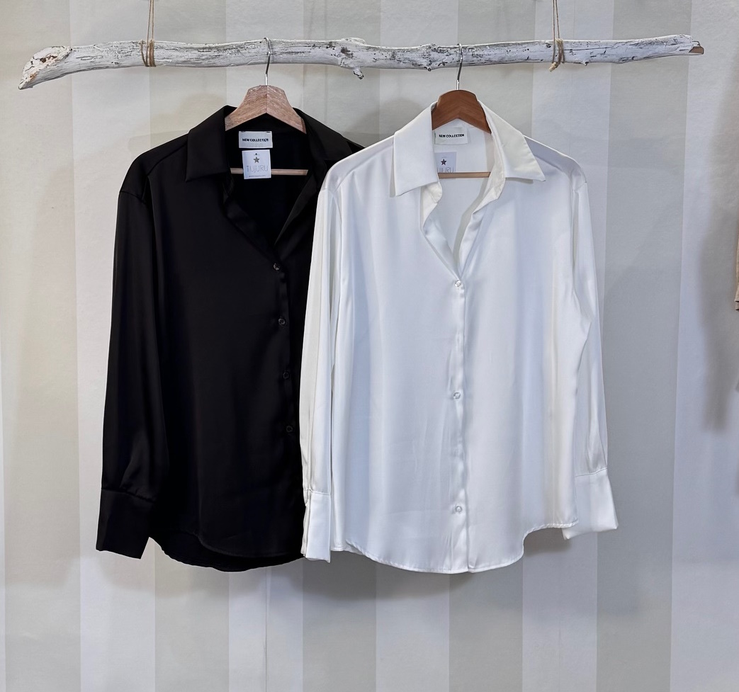 Samisa satinada con solapa y escote pico. Género muy fluído. Talla única completa.