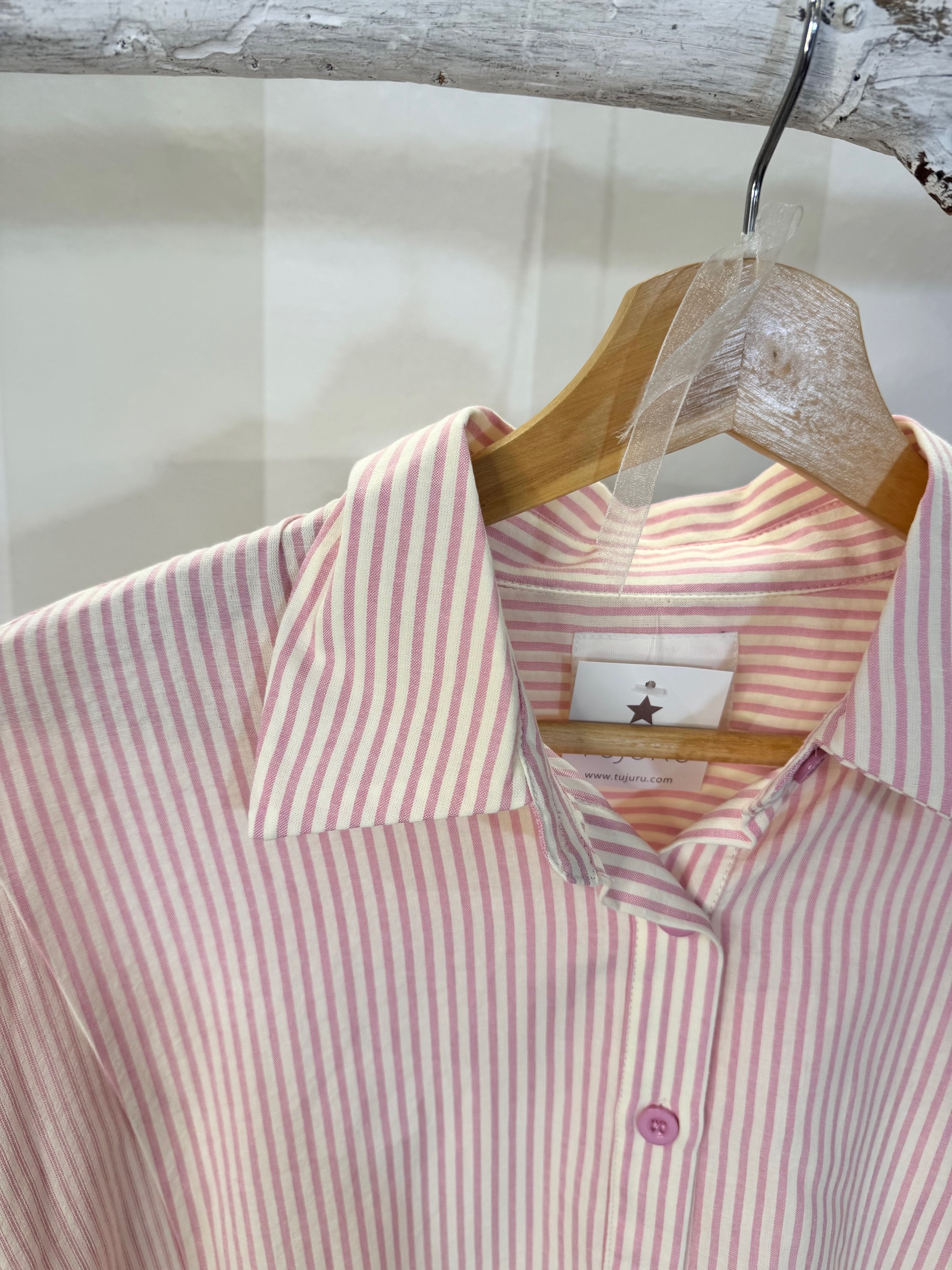 Camisa básica de rayas con oberturas en la parte inferior delantera. Talla única oversize.