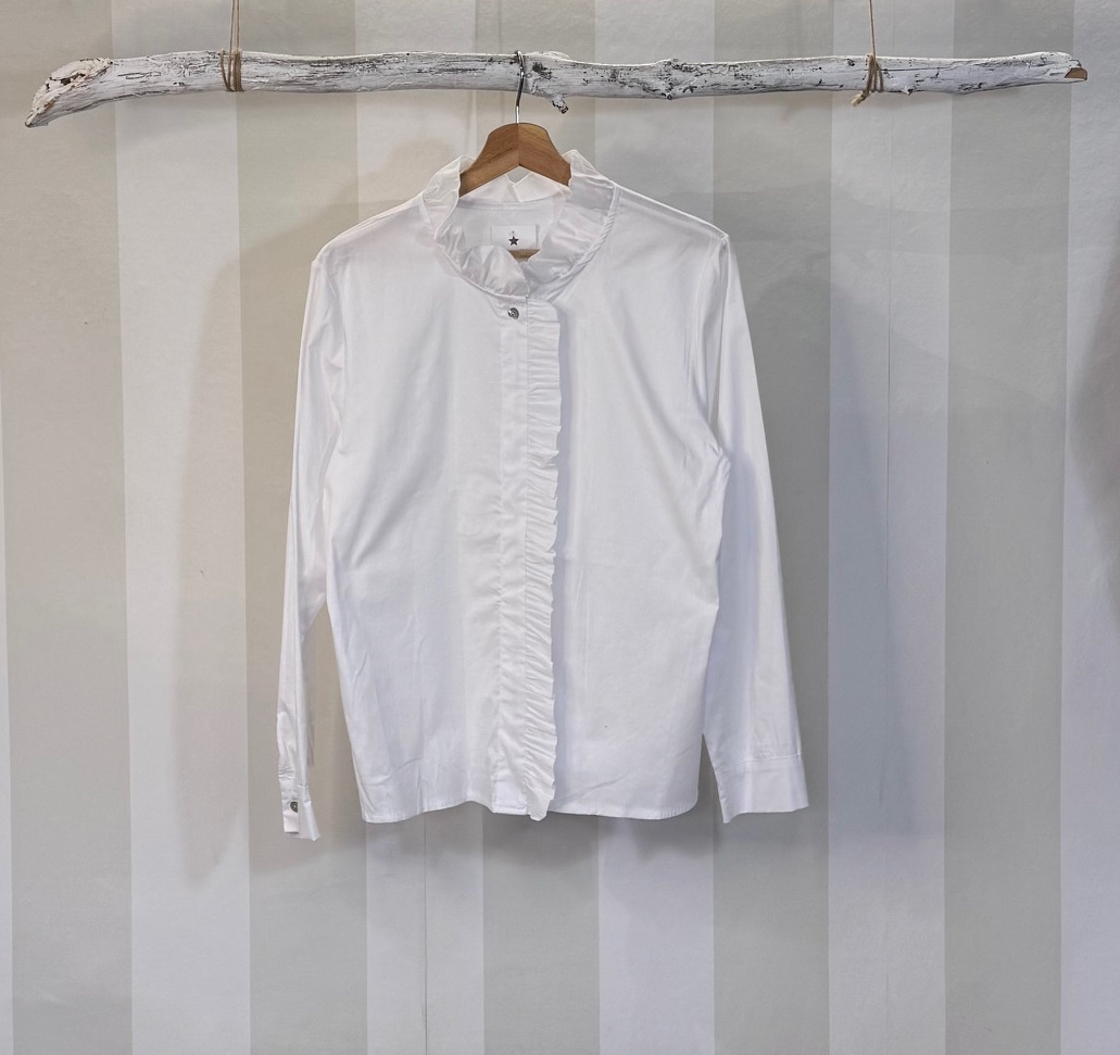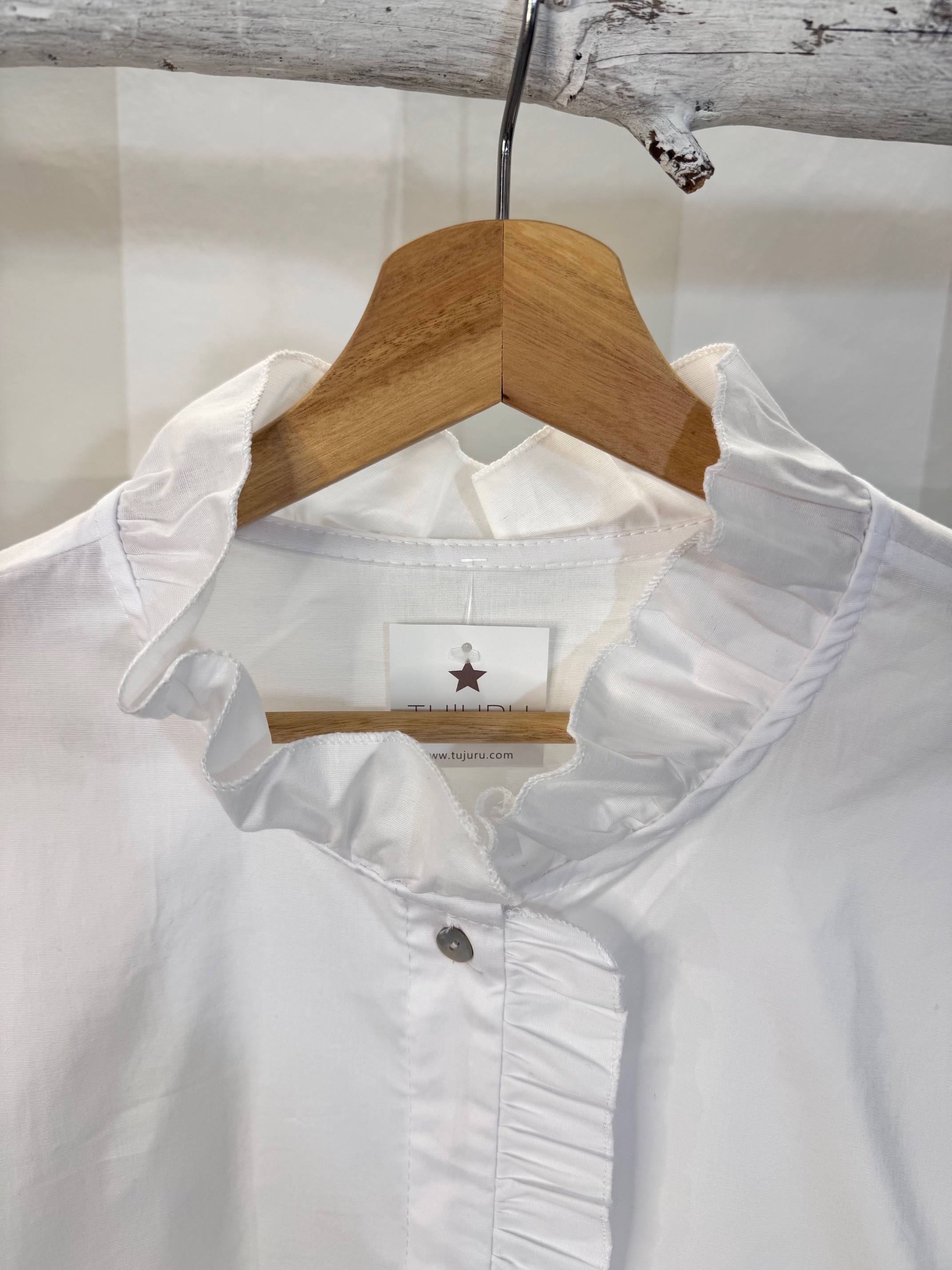 Camisa básica del algodón con cuello rizado y chorrera en la parte delantera. Talla única.