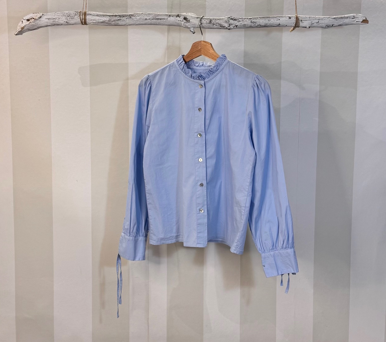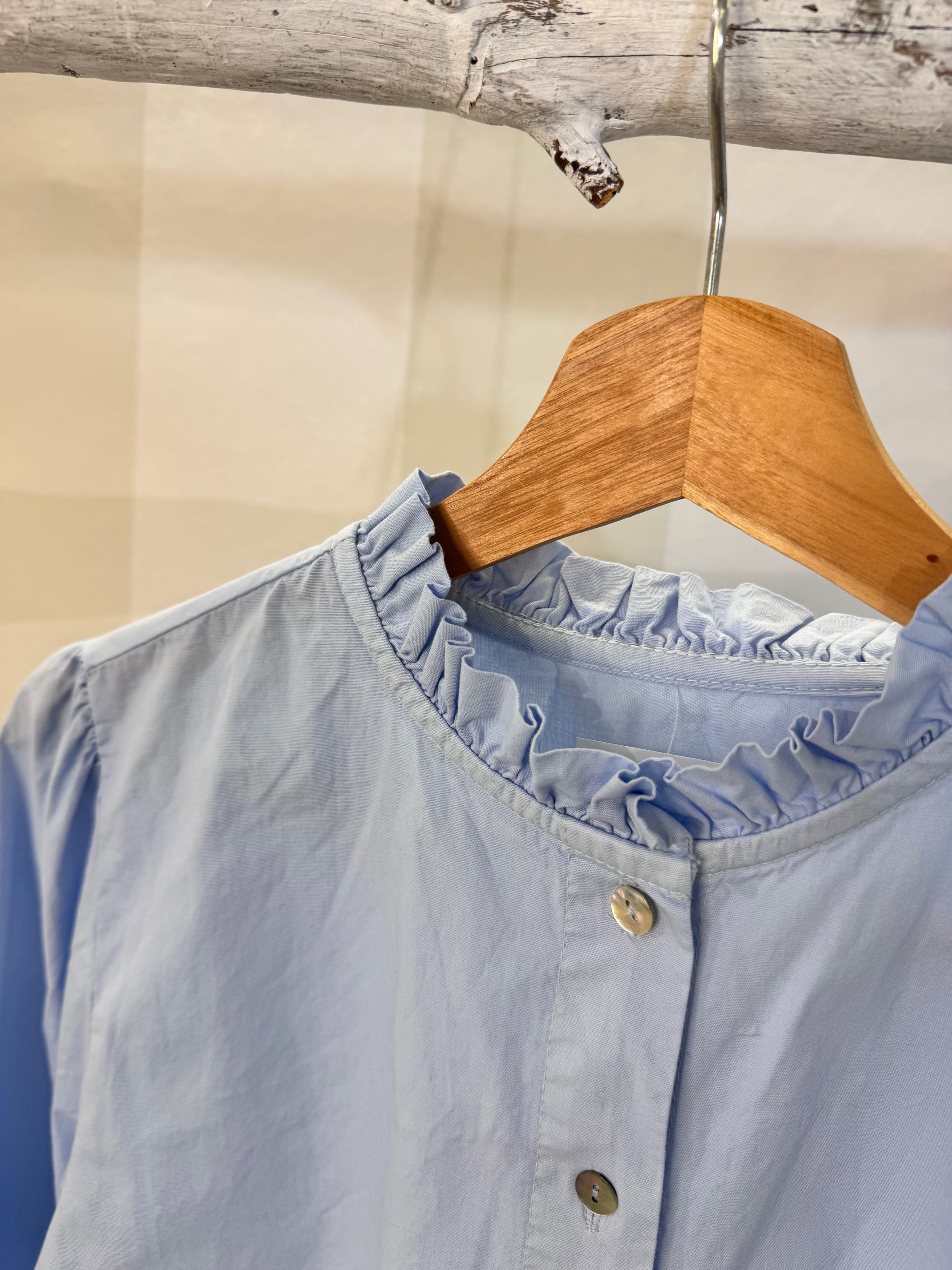 Camisa de algodón con cuello rizado y puños con cordón. Talla única.