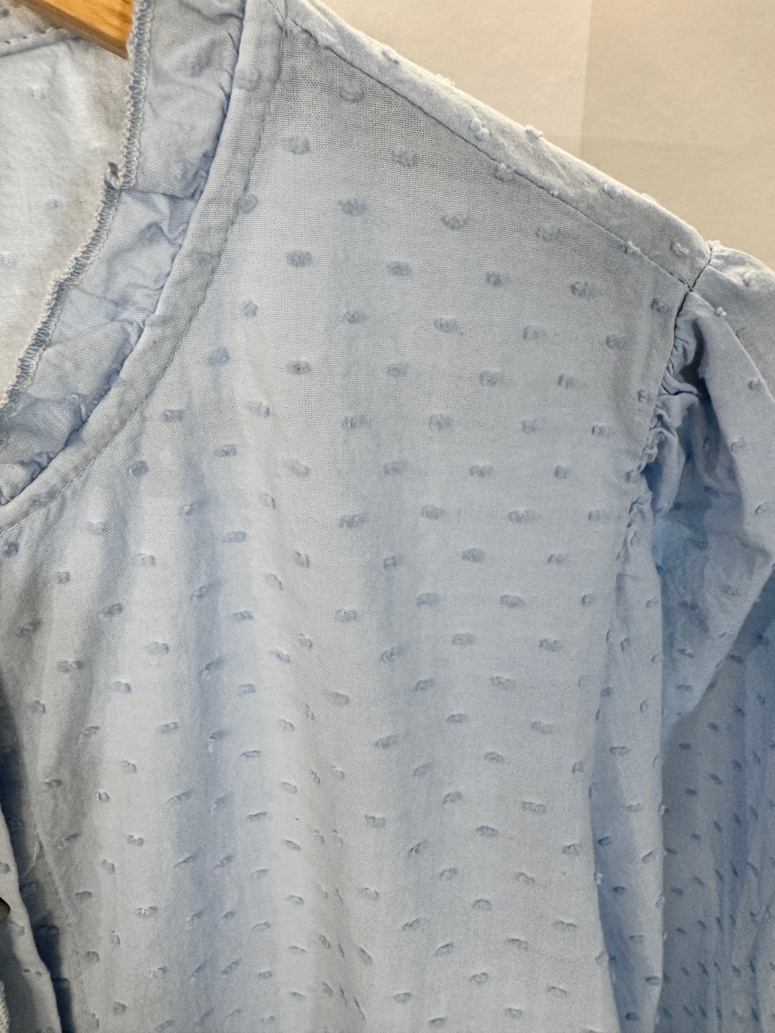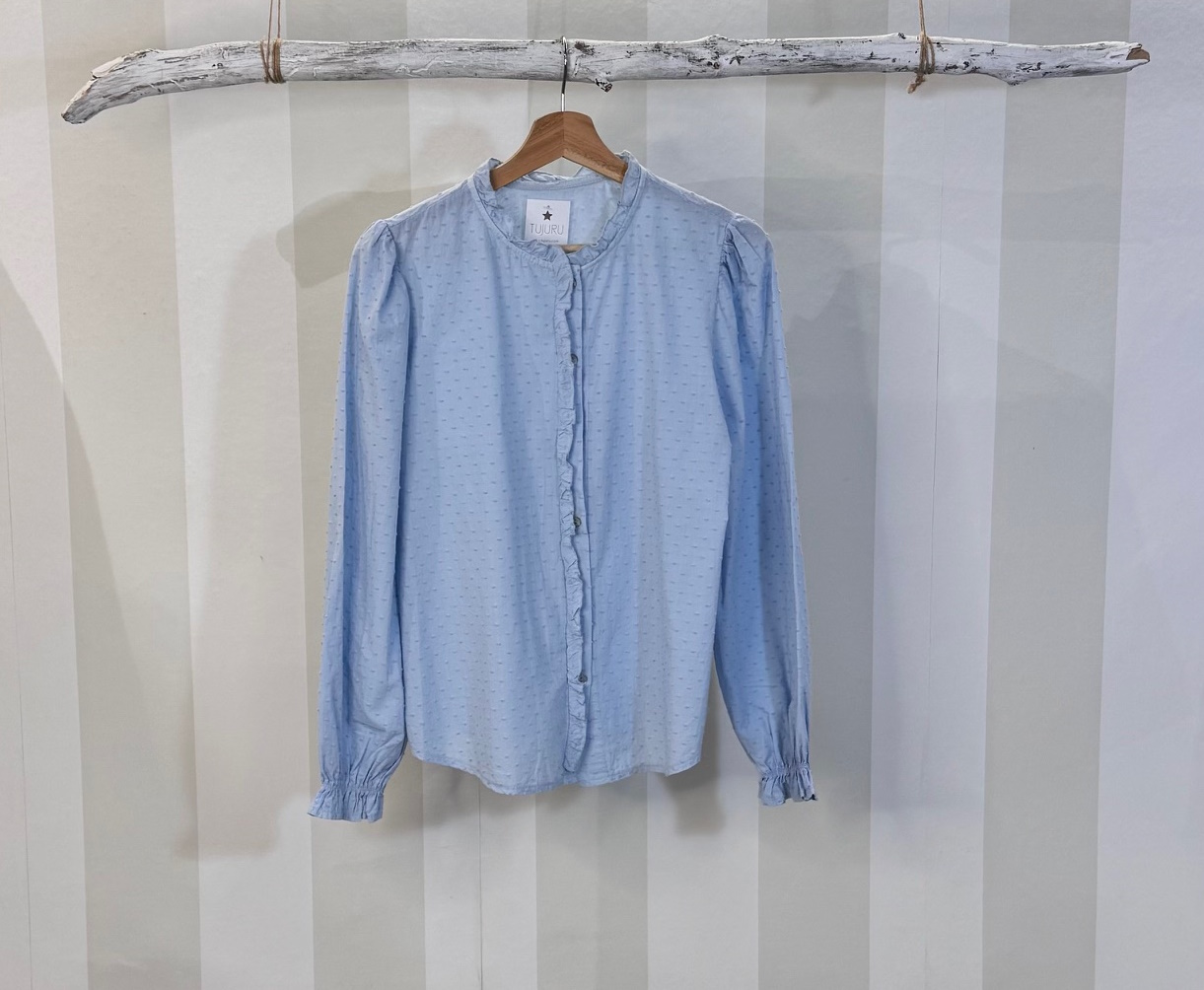 Camisa de plumetti con cuello y puños rizados. Talla única.