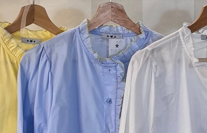 Camisa básica con cuello rizado y solapa. Ribete en diferente color. Talla única.