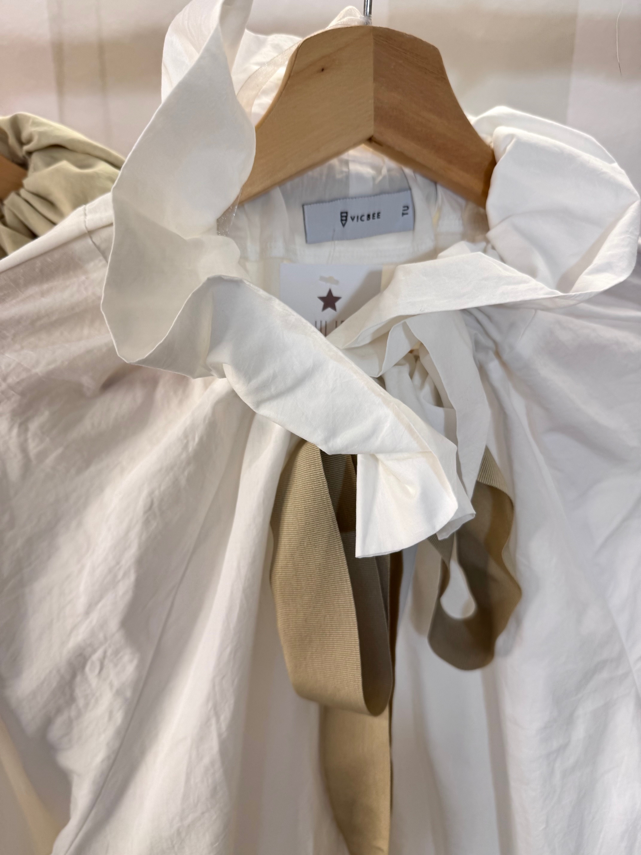 Blusa con bombacha con cuello rizado y lazada. Talla única.